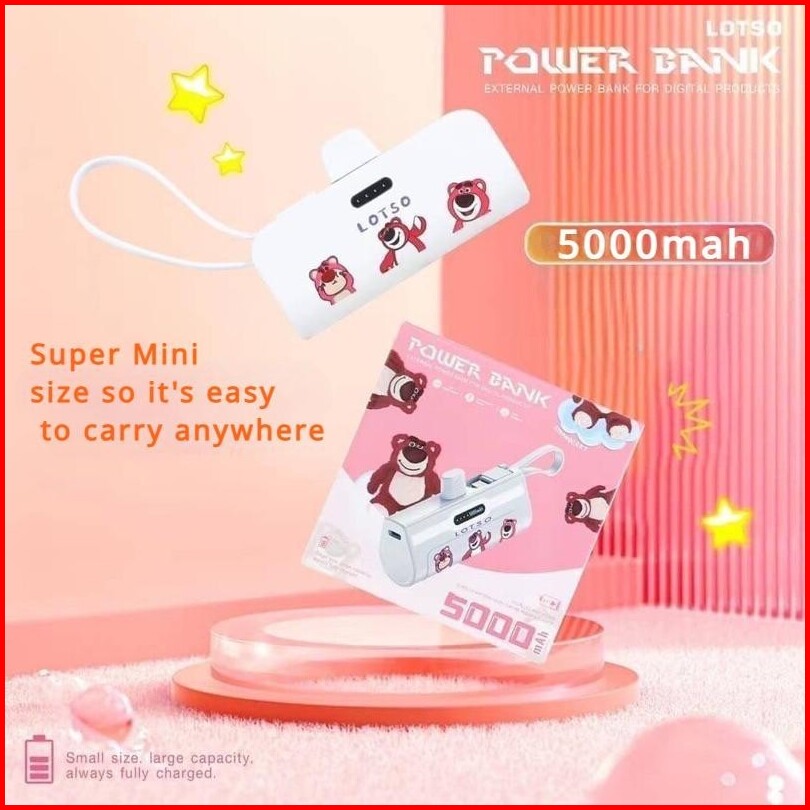 5000mah Power Bank Minifast Charger Lotso Bear Mickey Portable Wireless 2 Conector For Iphone And Type-c