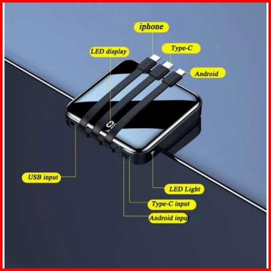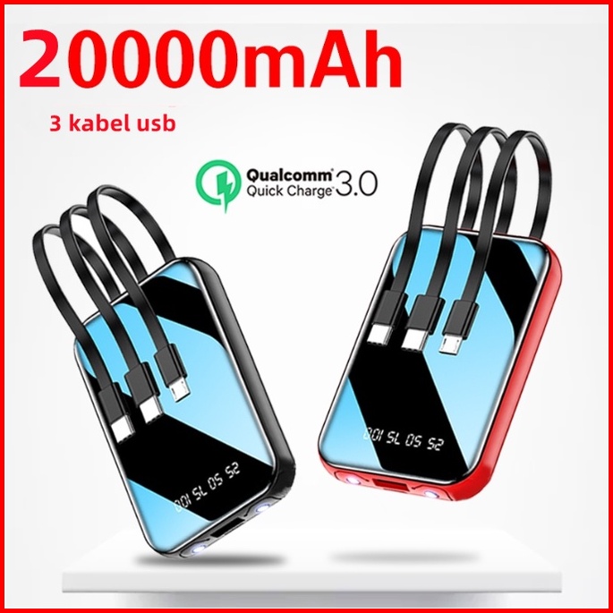 Power Bank 20000 Mah Powerbank 3 Usb Output 2 Input Led Display Murah Mini Small Size