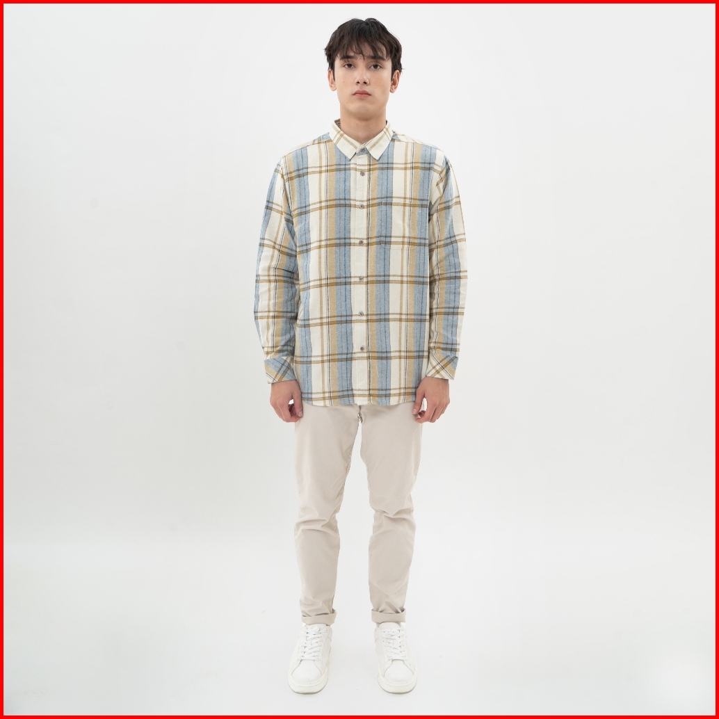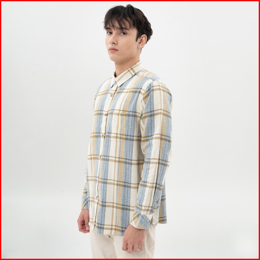 M231 Kemeja Pria Flannel Panjang Cream 0298