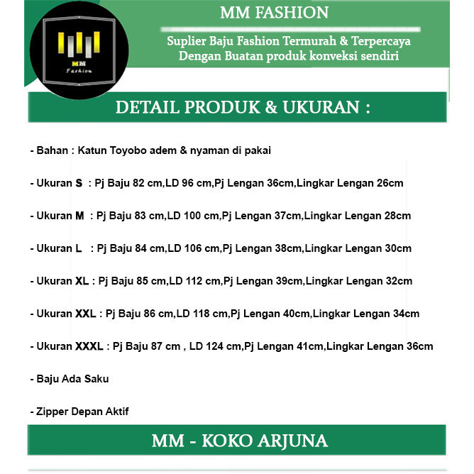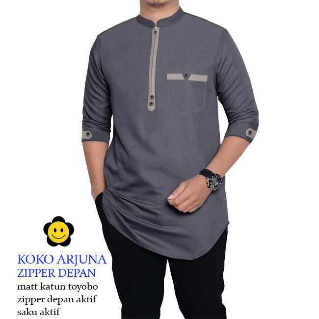 (Grtais Ongkir) Koko Arjuna - MM Fashion (MM) - Ukuran S-3XL - Matt Katun Toyobo - Baju Koko Qurta Pria