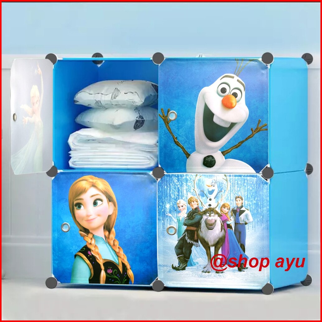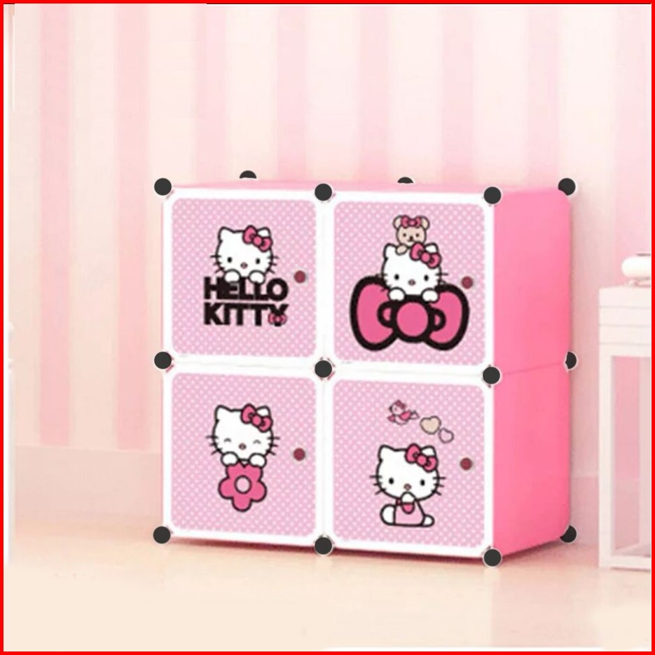 Lemari Plastik Portable Lemari Pakaian Rak Serbaguna Susun Lemari Baju Anak 4 Pintu