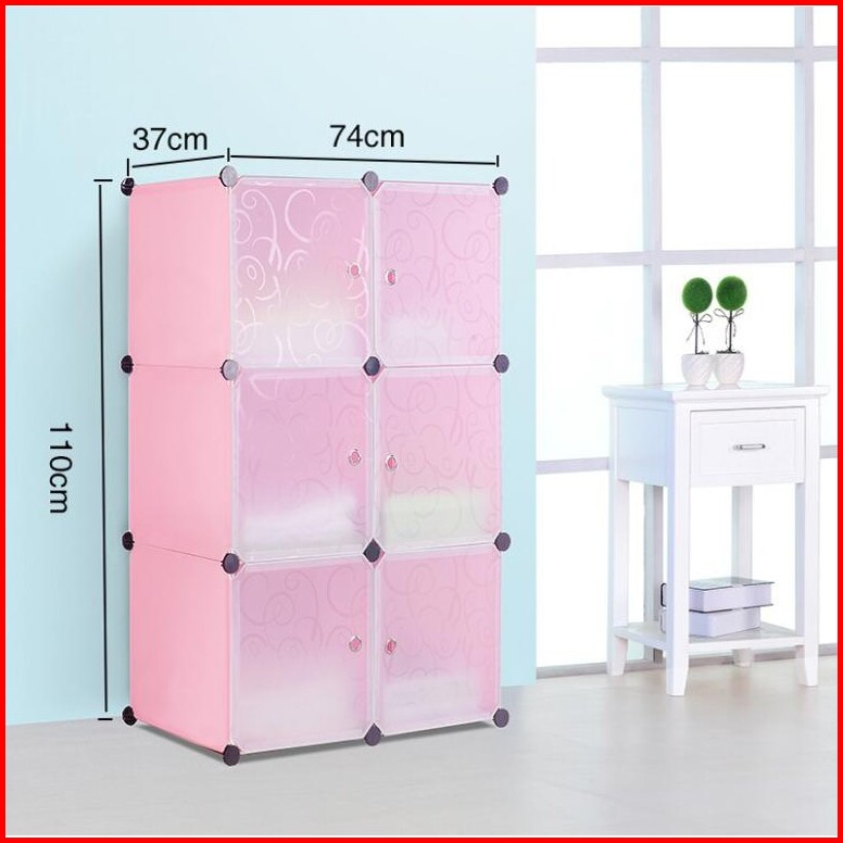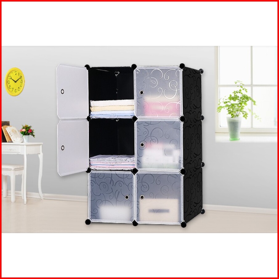 Lemari Pakaian Lemari Plastik Rak Serbaguna Susun Lemari Baju Rak Tas 6 Pintu Kotak