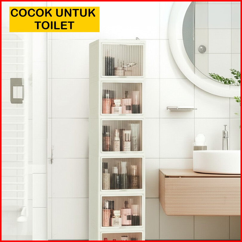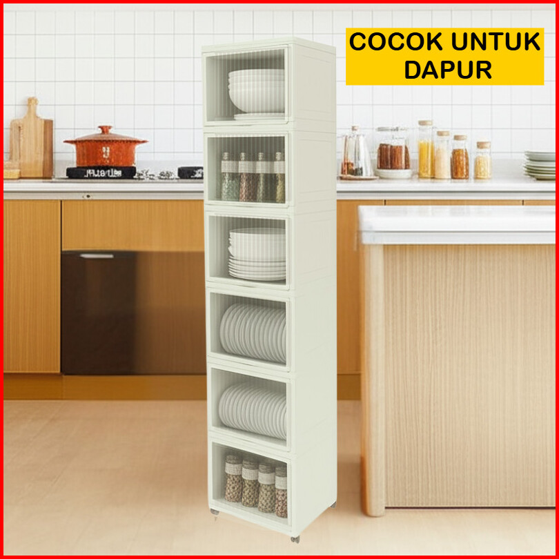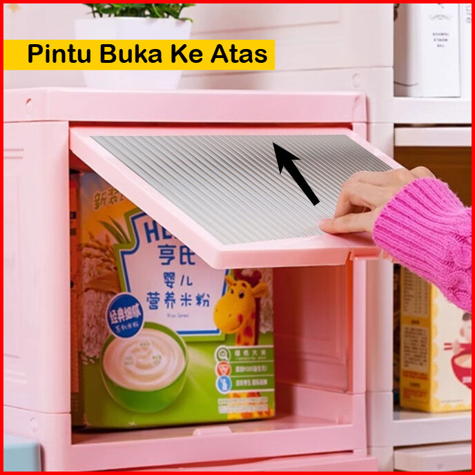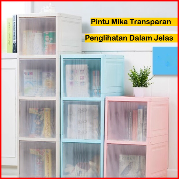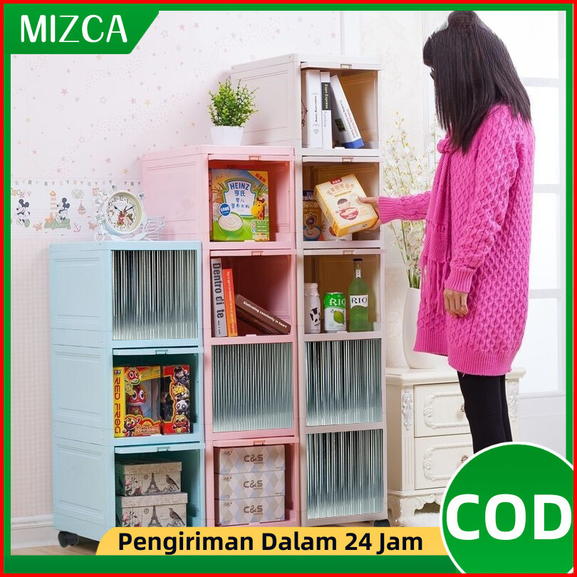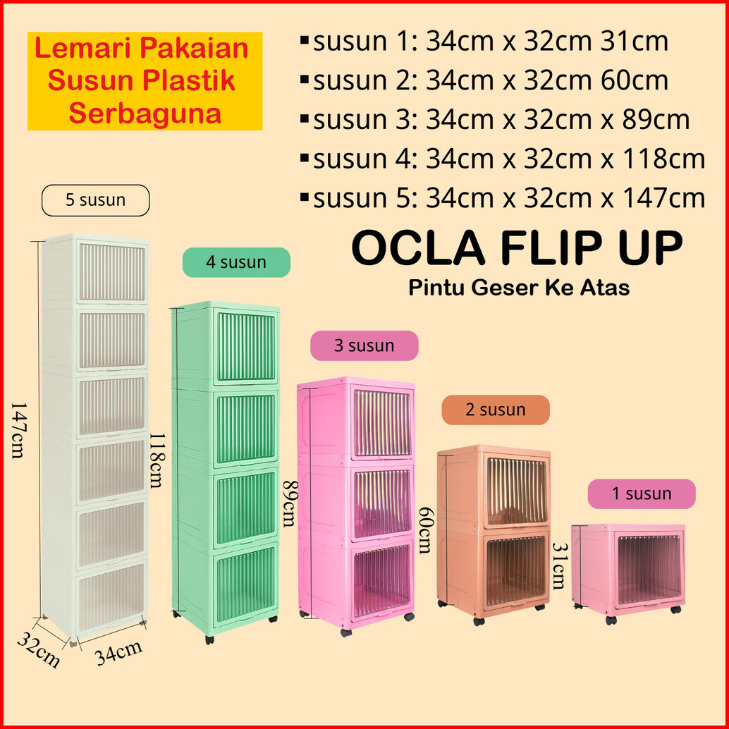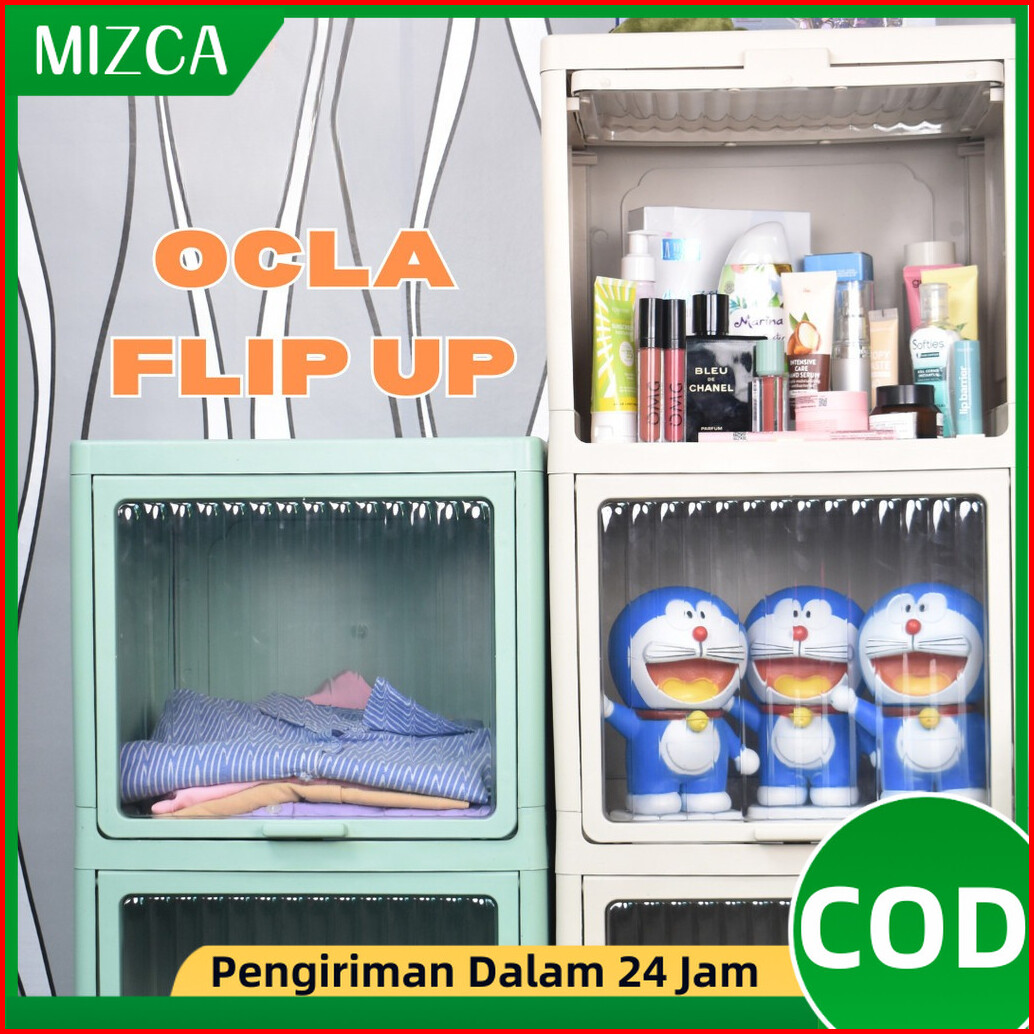 Mizca Lemari Pakaian Plastik Ocla Flip Up Modern Lemari Susun Rak Sepatu Pintu Transparan Geser Atas Roda