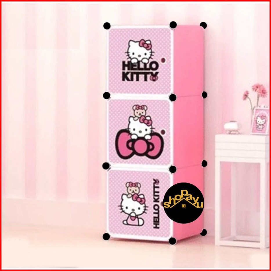 Lemari Baju Lemari Plasrik Portable Rak Susun Serbaguna Rak Buku Lemari Anak Bayi 3 Pintu