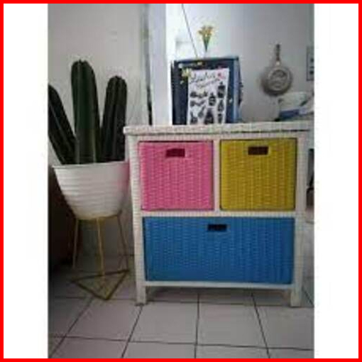 Ready Stok Lemari Laci Minion Rotan Sintetis