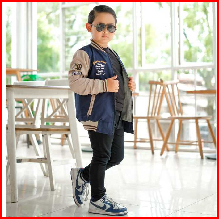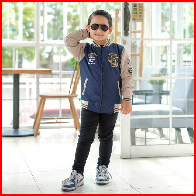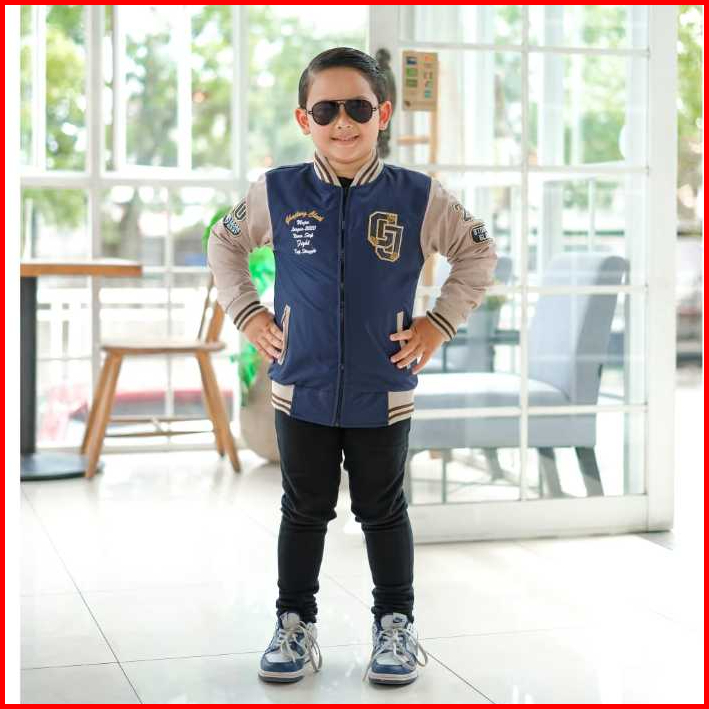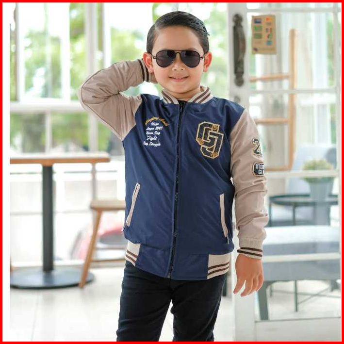 Ghajleng Jaket Baseball Anak Laki Laki Gj Logo Brand Navy