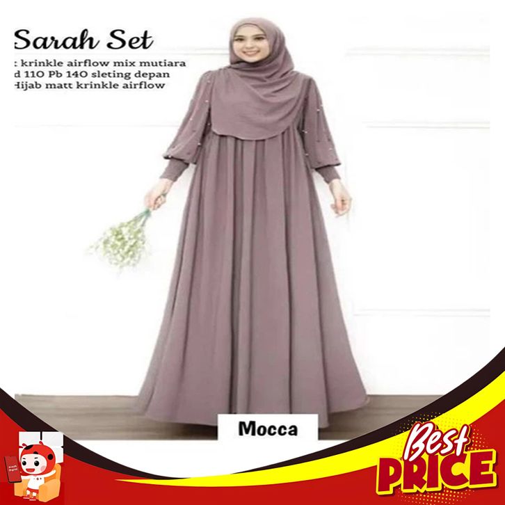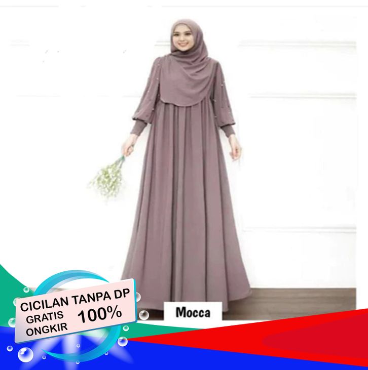 Gamis Set Hijab Syari Dress Casandra Premium Gamis Lebaran 2024 Model Gamis Terbaru Gamis Crinkle Mix Mutiara Plus pashm