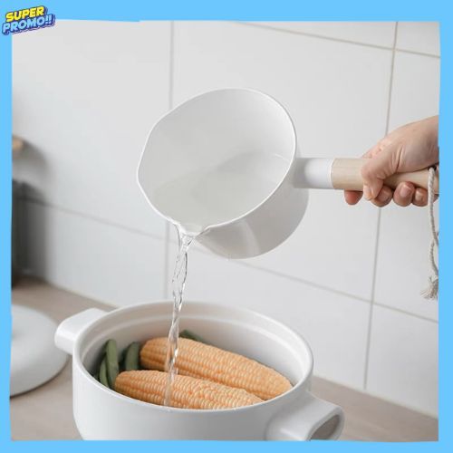 Gayung Mandi Aesthetic/Gayung Putih Plastik/ Gayung Mandi Murah /Gayung Air Putih Gagang Kayu/ Gayung Mandi Estetik/ kor