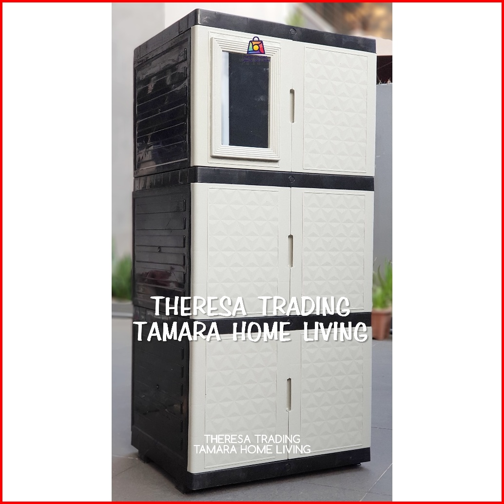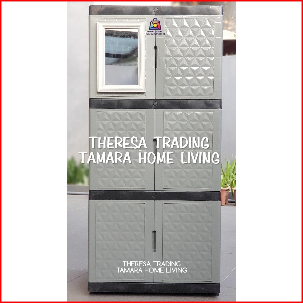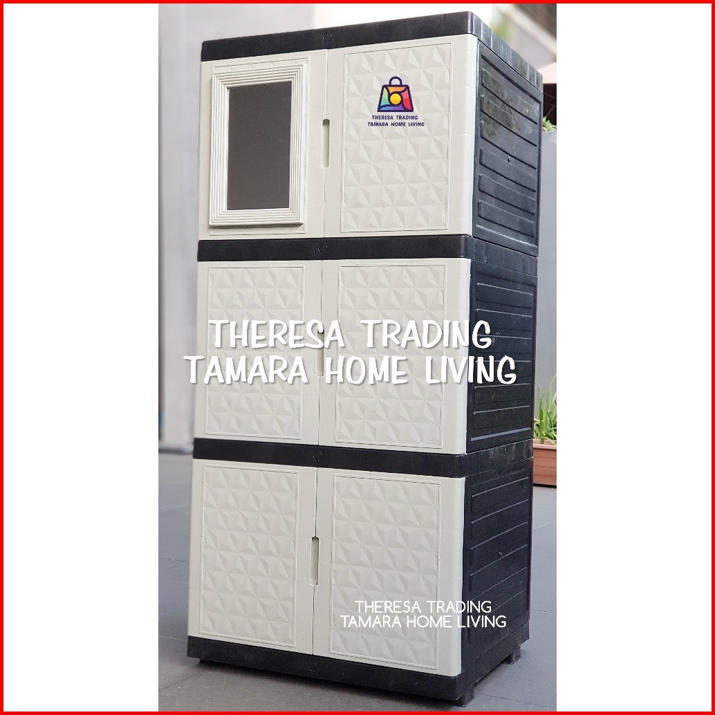 Lemari Plastik Serba Guna Diamond Kaca Cermin 3 Susun 3 Design Premium