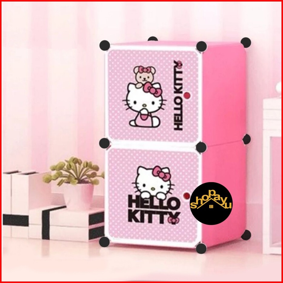 Lemari Pakaian Anak Rak Serbaguna Plastik Lemari Baju Rak Buku Lemari Susun 2 Pintu Kotak