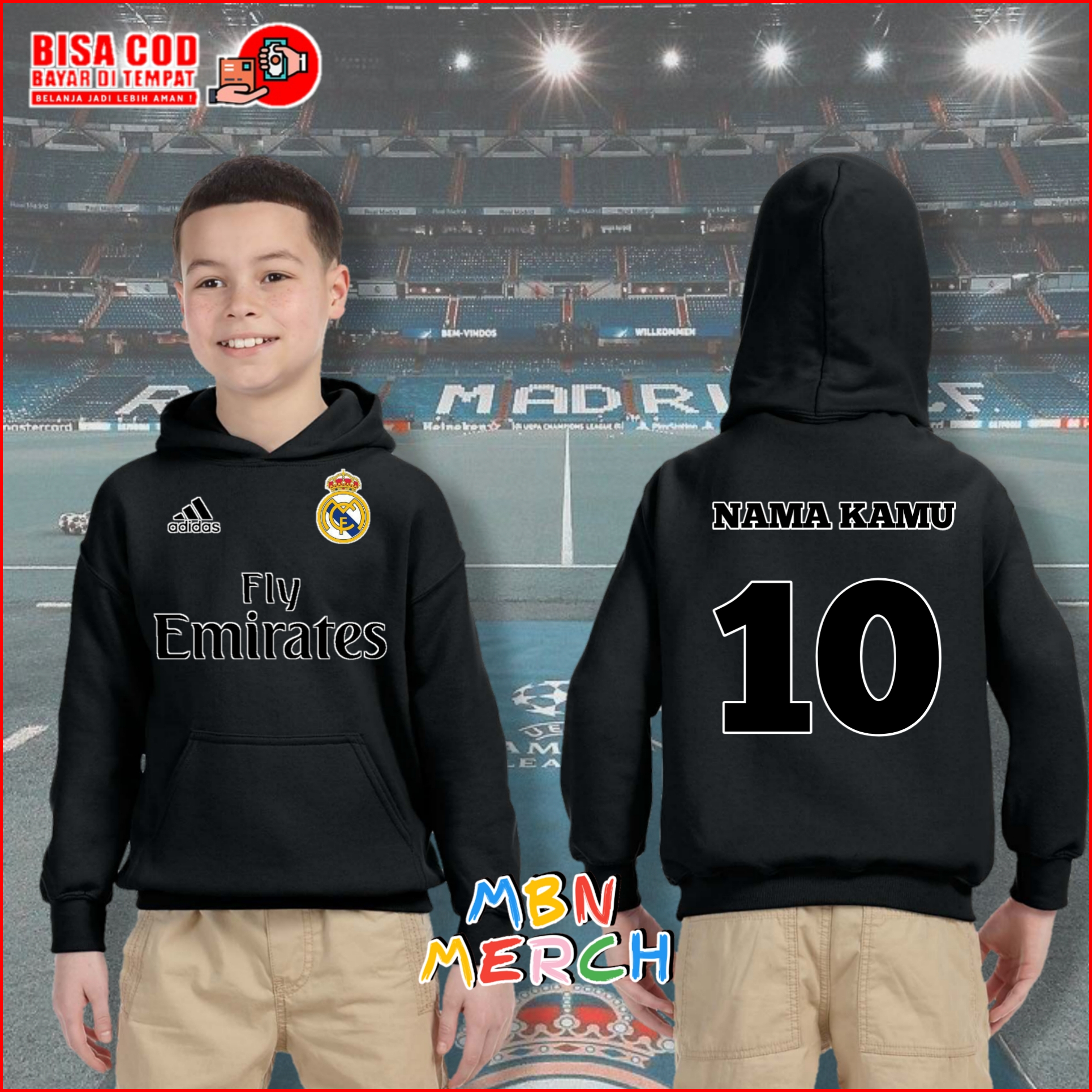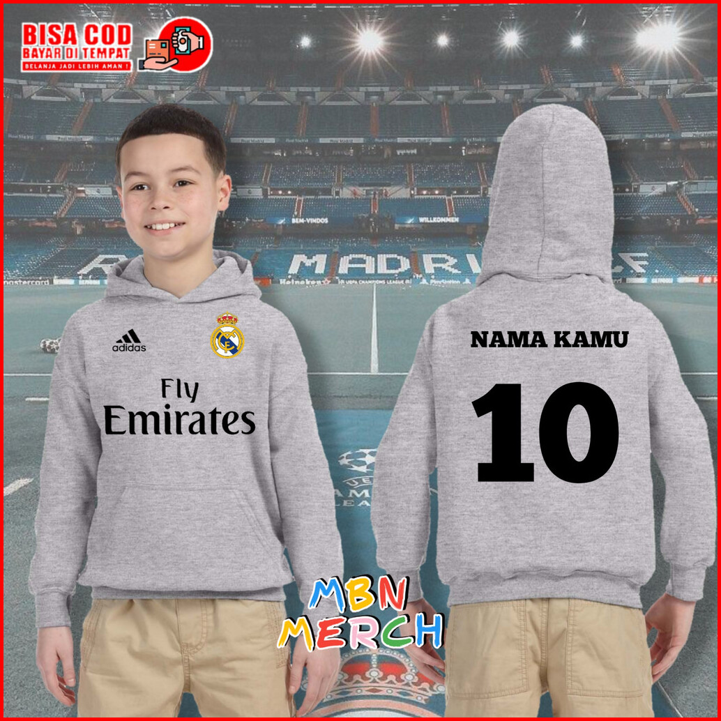 Jaket Hoodie Anak Real Madrid Bisa Pakai Nama Jaket Bola Anak