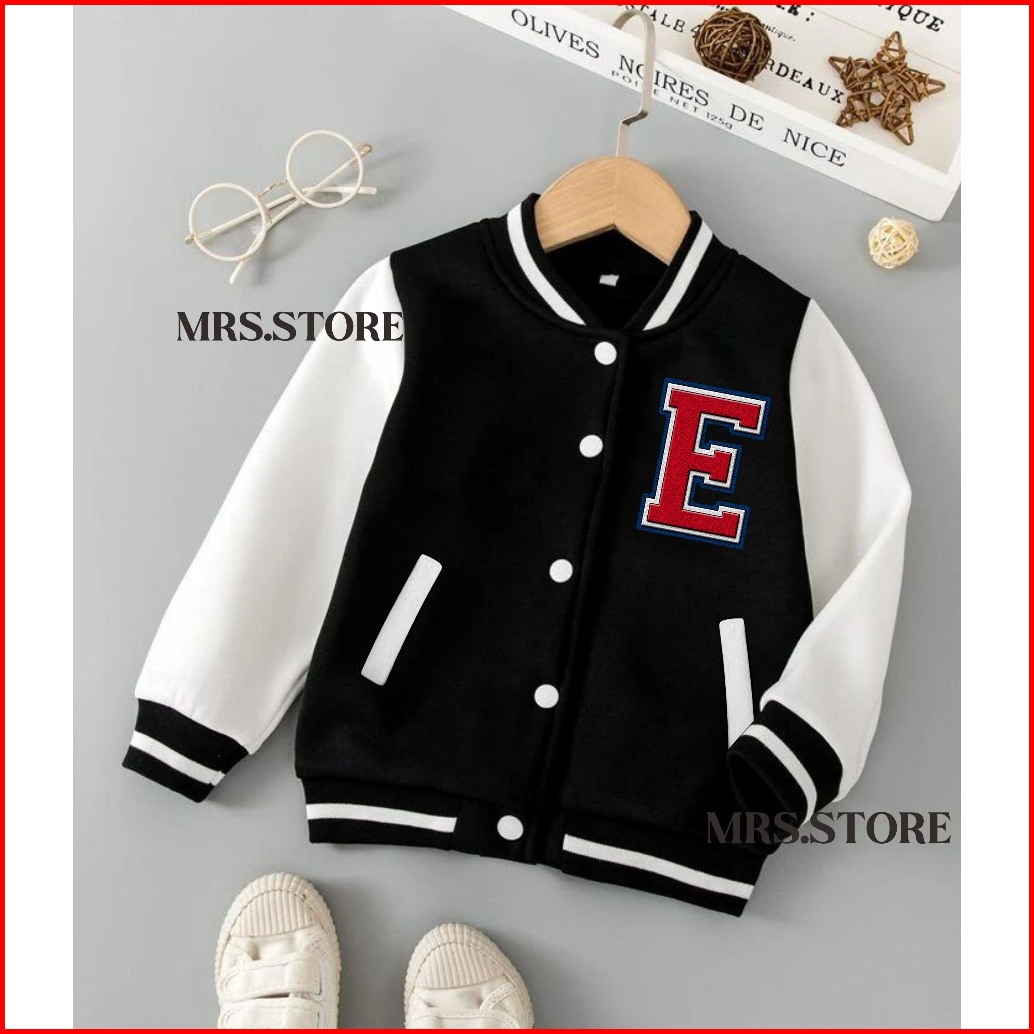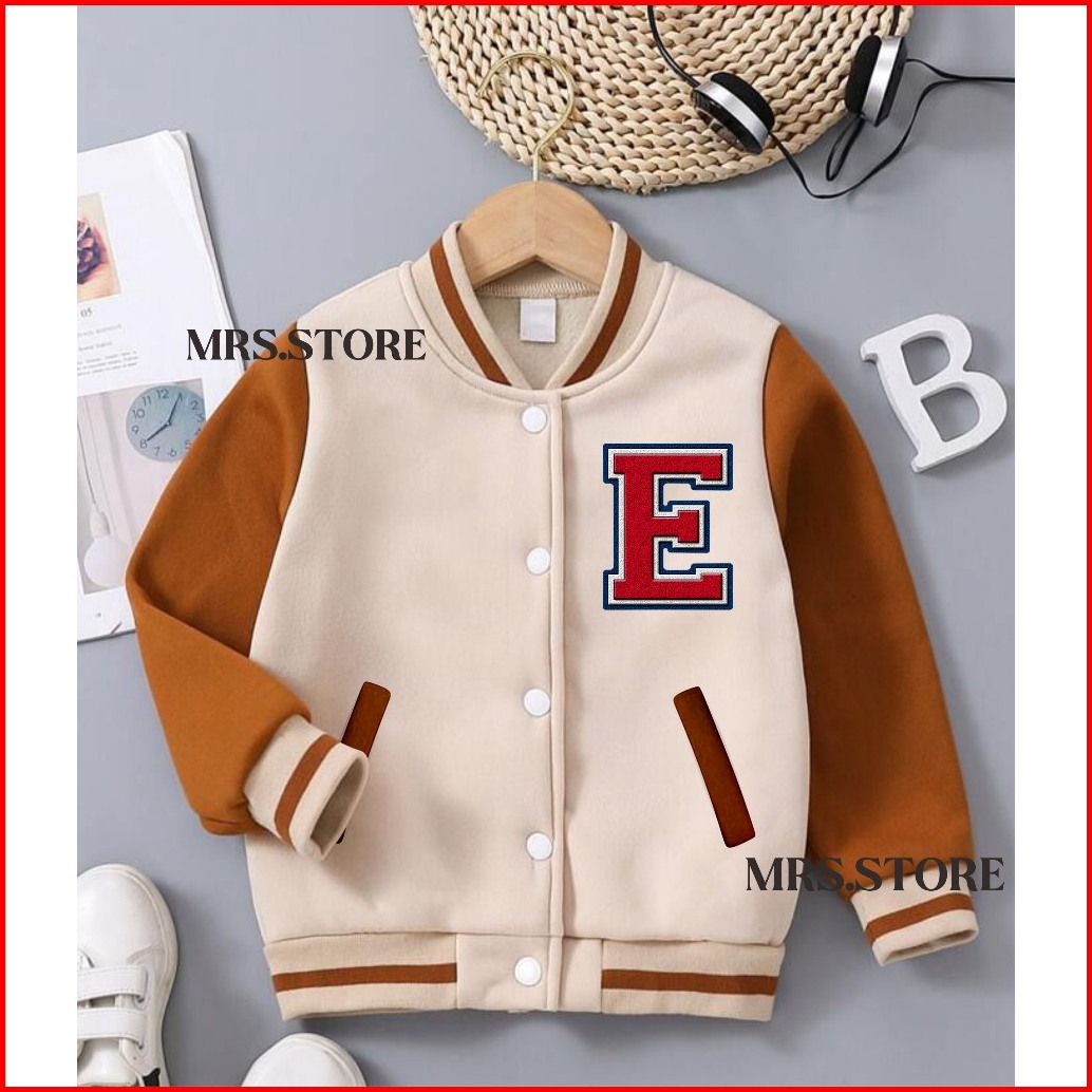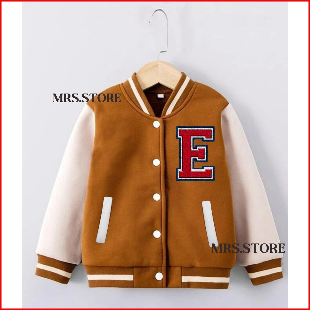 Jacket Baseball Anak Inisial E Laki Laki Perempuan Umur 2 3 4 5 6 7 8 9 10 11 12 Tahun Jacket Varsity Anak Cewe Cowo Kad