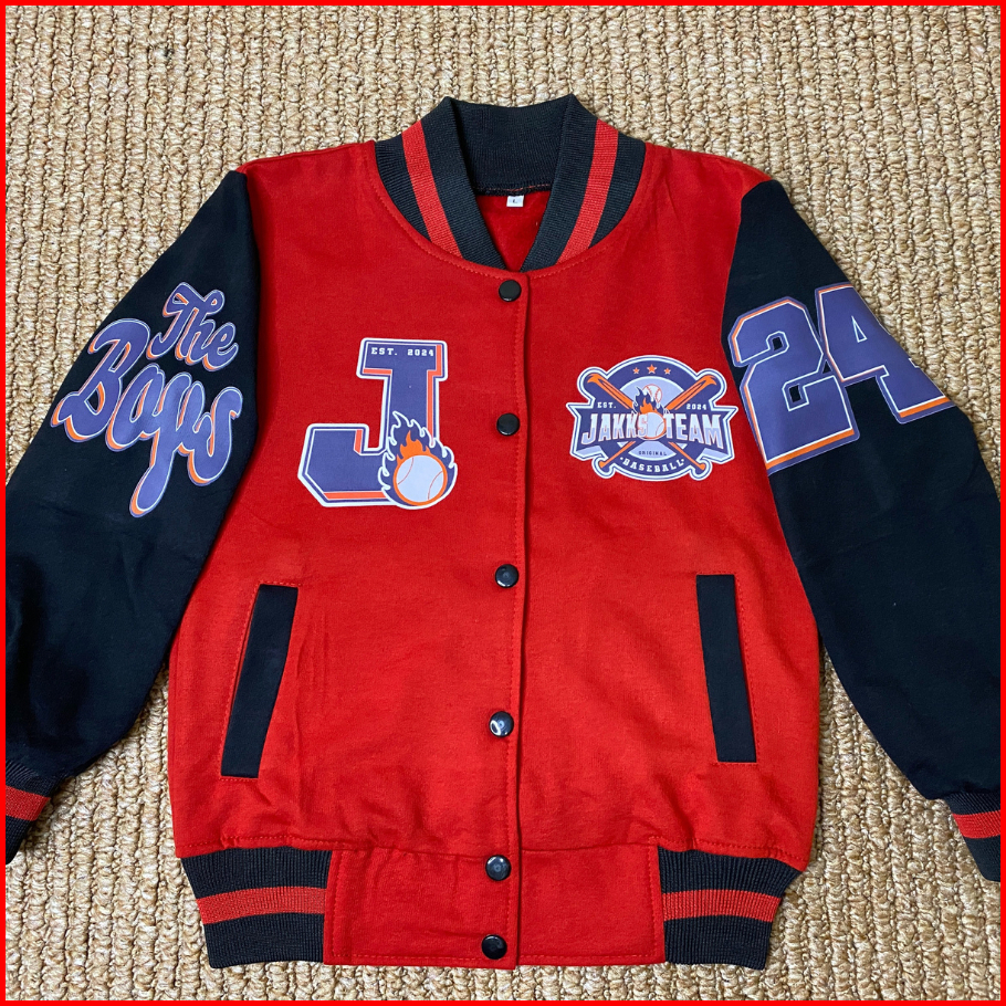 Jakks Jaket Baseball Varsity Anak Laki Laki Custom Inisial A-z Jacket Anak Cowok Umur 3 4 5 6 7 8 9 10 11 12 13 Tahun