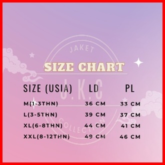1-2 Thn (S), 2-3 Thn (M), 3-5 Thn (L), 6-8 Thn (XL), 9-12 Thn (XXL)