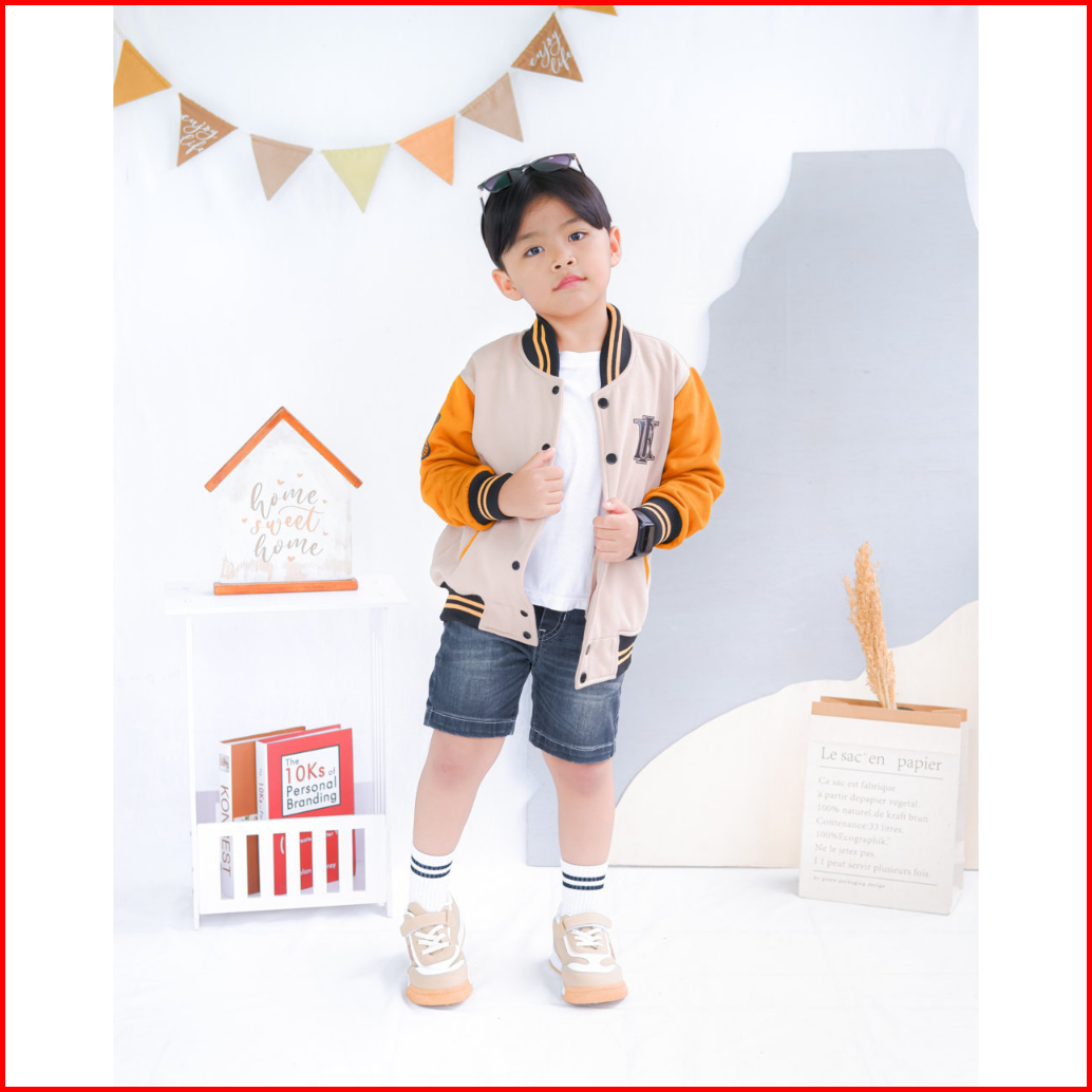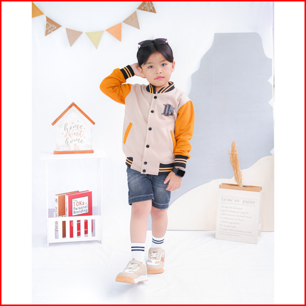 Jaket Baseball Anak Laki Laki Perempuan Variasi Warna - Crem