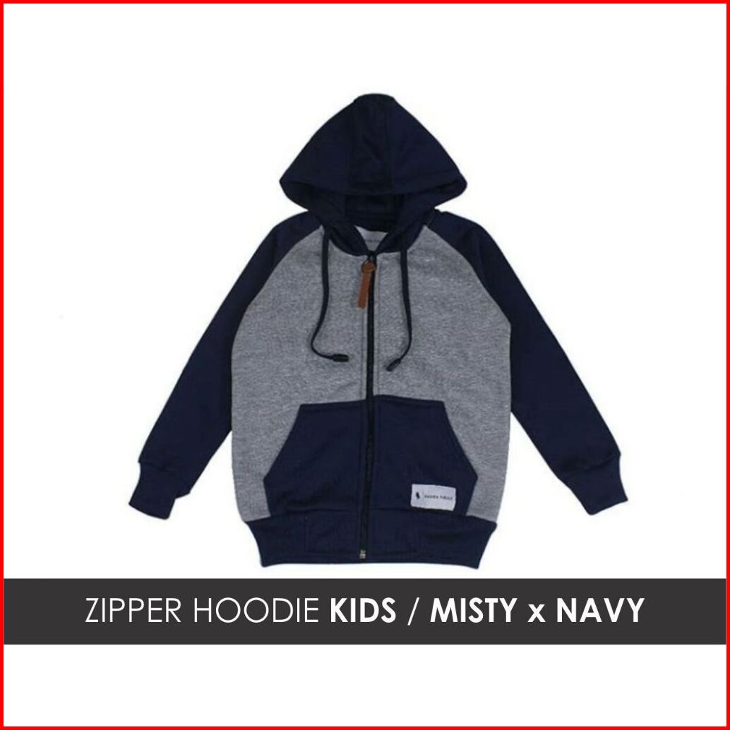 Hoodie Addict - Zipper Anak Warna Misty X Navy Laki-laki Perempuan Premium Original Tebal
