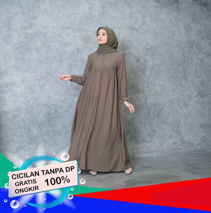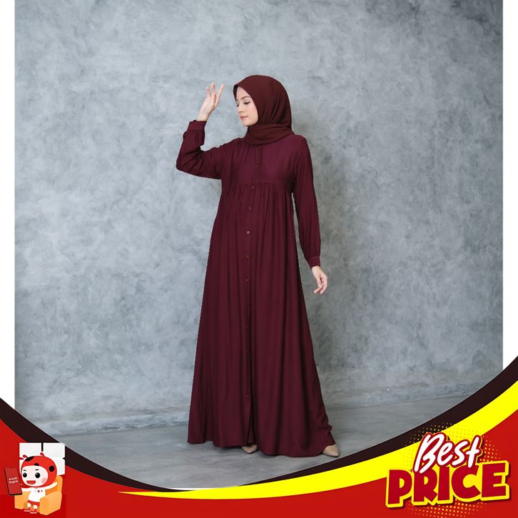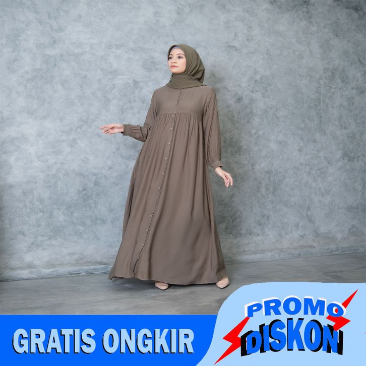 Gamis Full Kancing Rayon Twill Gamis Polos Premium Muslim Wanita Gamis Lengan Kancing