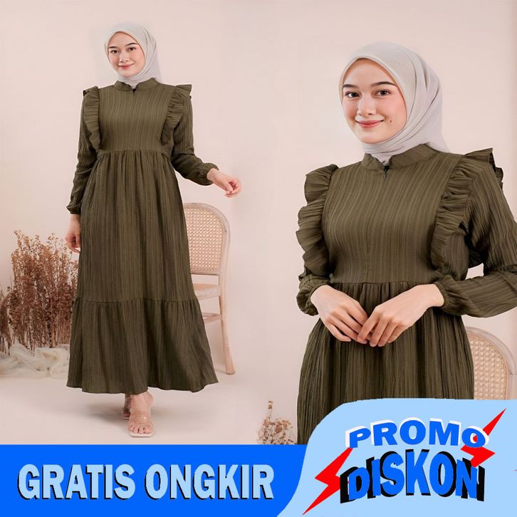Letisa Dress Wanita Dewasa Kekinian Gamis Polos Fashion Muslim Terbaru Bahan Ladycrush Premium