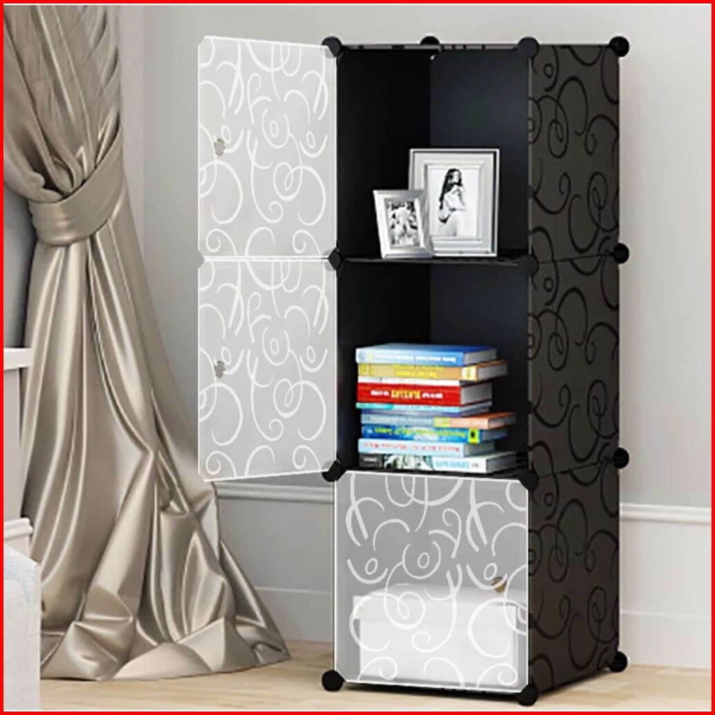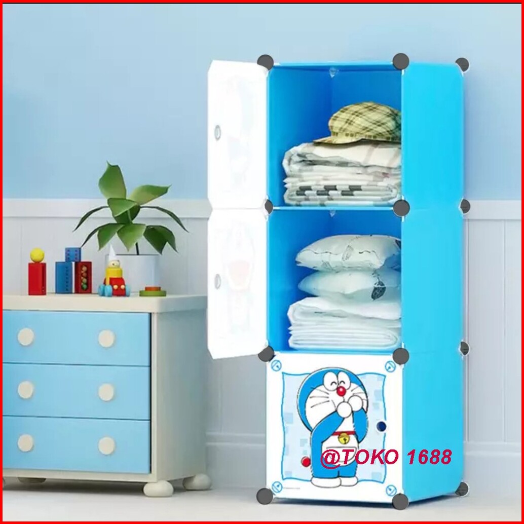 Lemari Pakaian Plastik Rak Serbaguna Susun Lemari Baju Rak Buku Toys 3 Pintu Kotak
