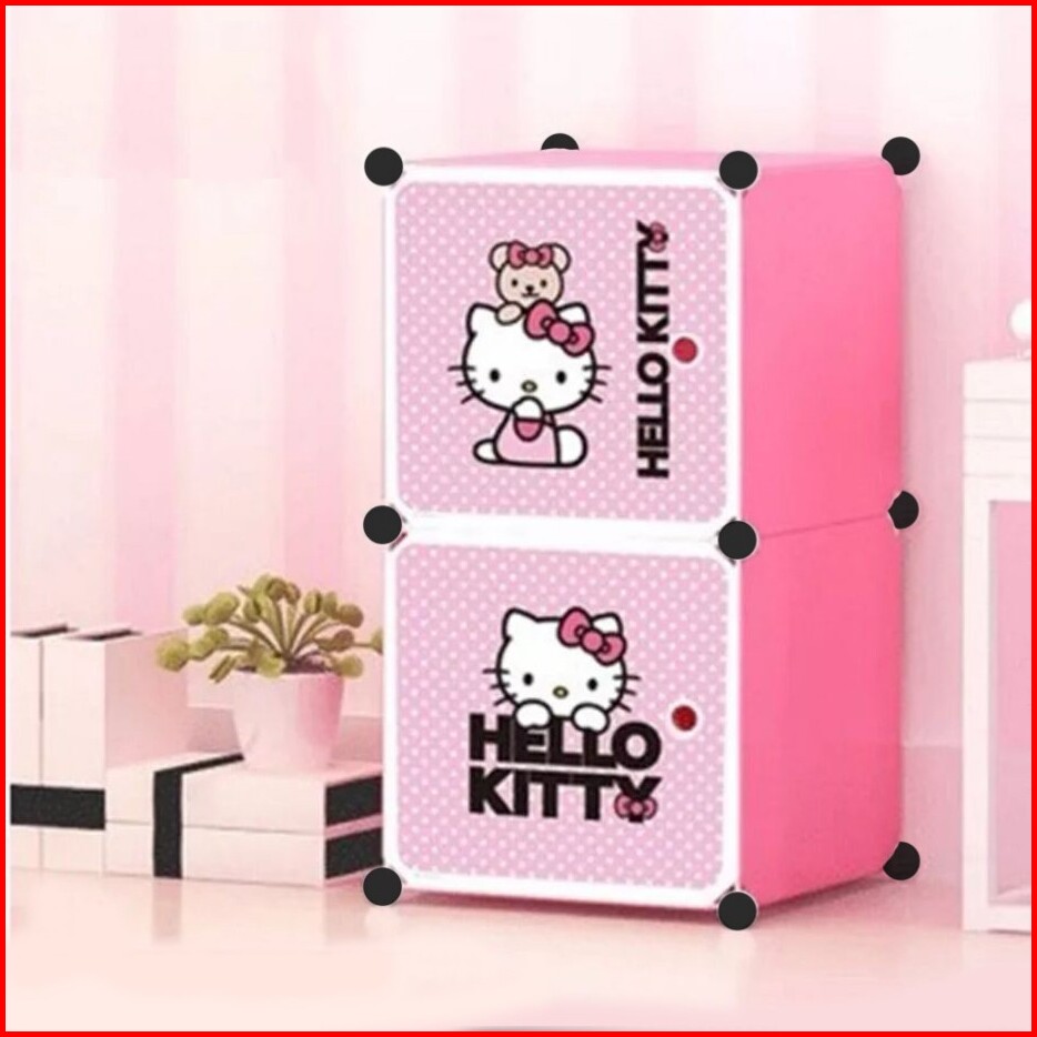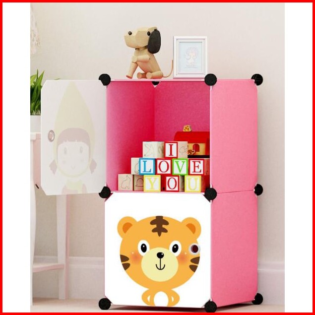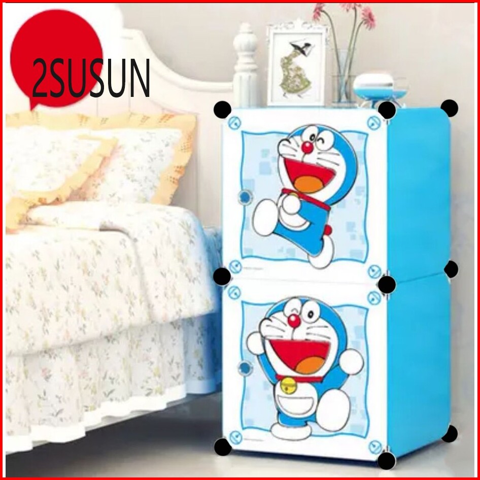 Lemari Pakaian Rak Serbaguna Susun Lemari Plastik Lemari Baju Rak Buku Toys Anak 2 Pintu Susun Kotak