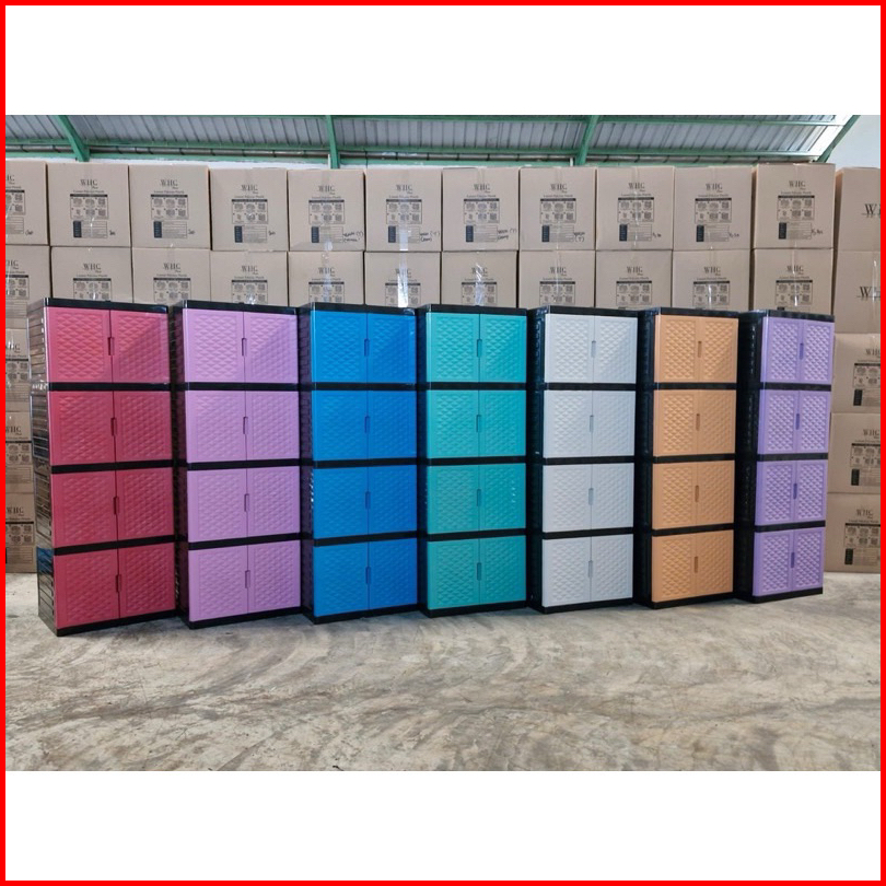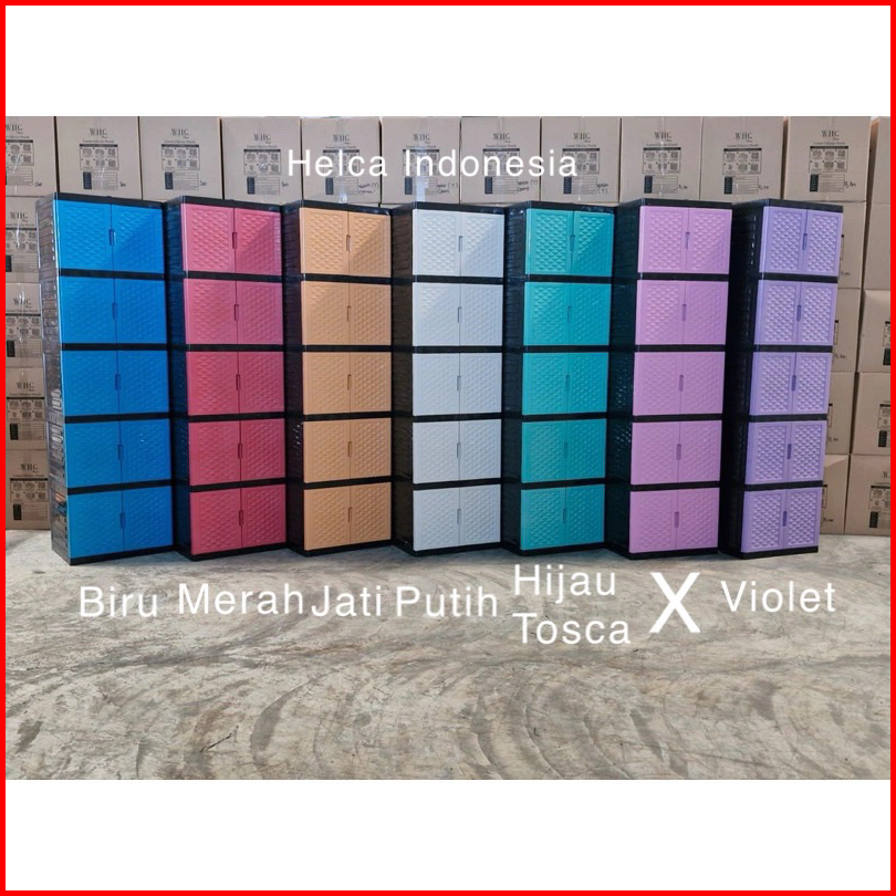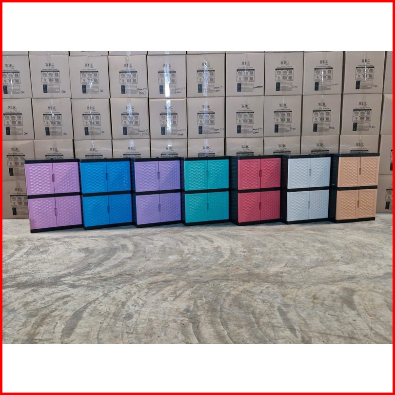Lemari Plastik Serbaguna Standart Dan Kunci Kaca Whc 2 Susun-3 Susun-4 Susun-5 Susun Kotak Tempat Pakaian Tingkat