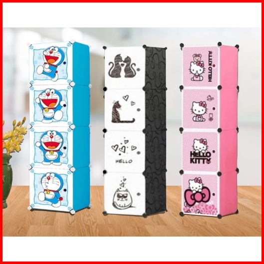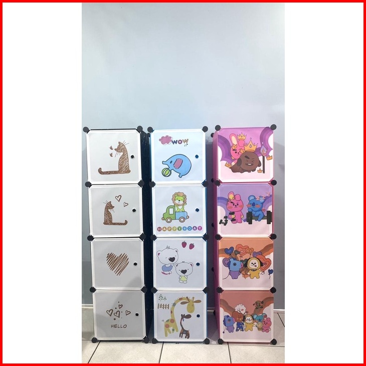 Lemari Pakaian Plastik 4 Susun Lemari Serbaguna Lemari Baju Rak Buku 4 Pintu Lemari Hemat Tempat Lemari Multifungsi