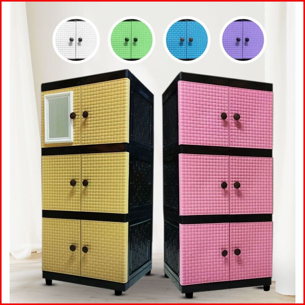 Lemari Plastik Susun 3 Motif Tikar Bambu 50x42x108 Cm