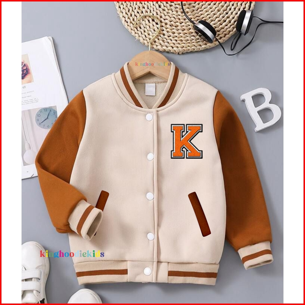 Jaket Varsity Anak Laki Laki Perempuan Inisial K Umur 2 3 4 5 6 7 8 9 10 11 12 Tahun Jaket Baseball Anak Cewe Cowo Hoodi
