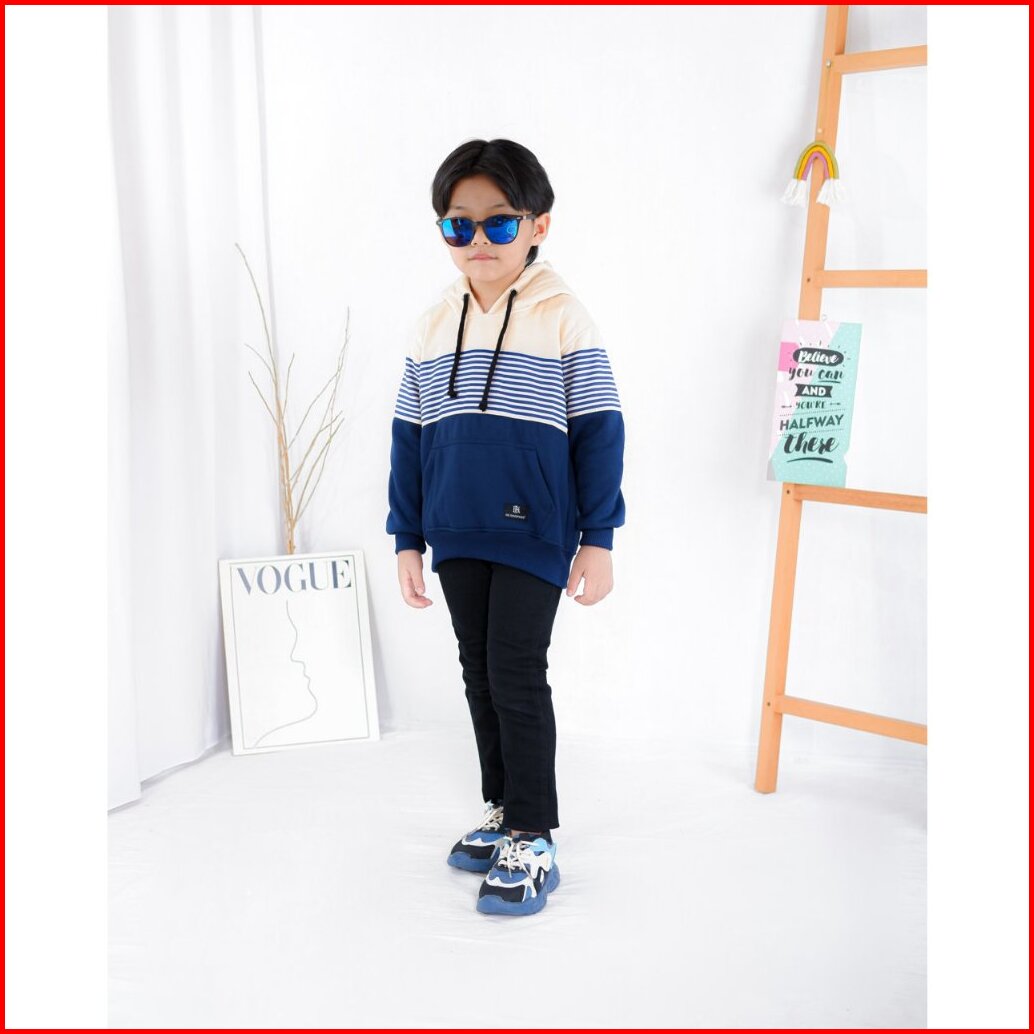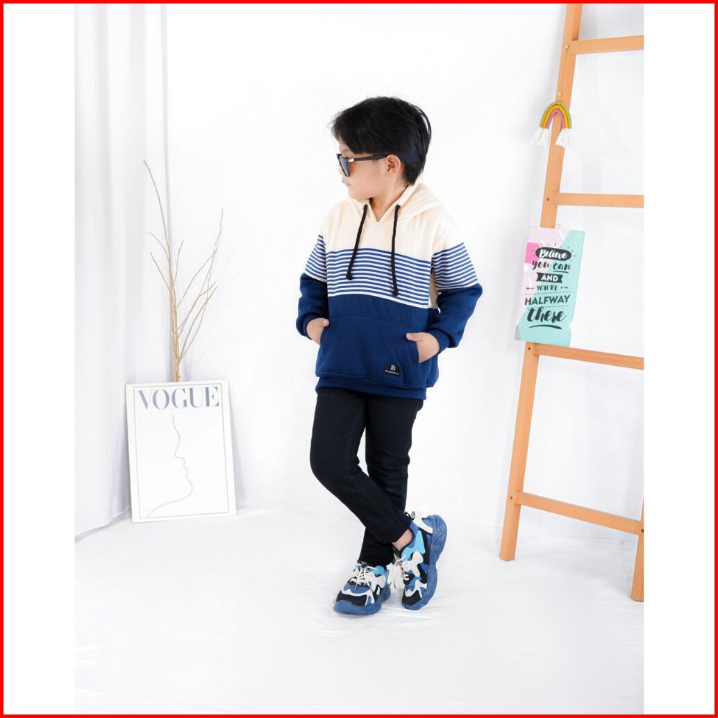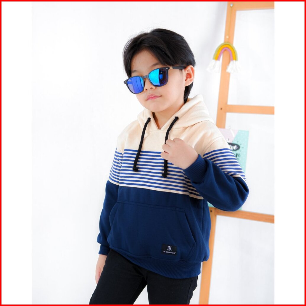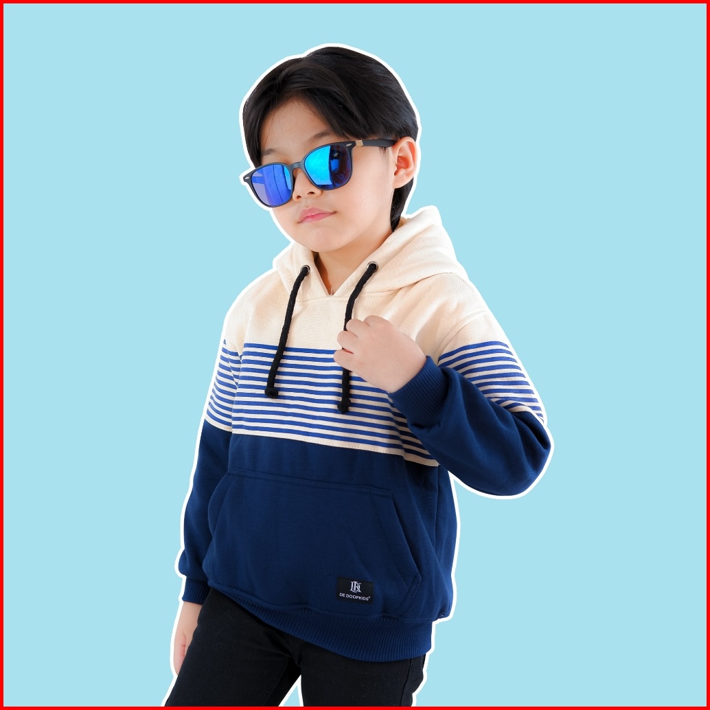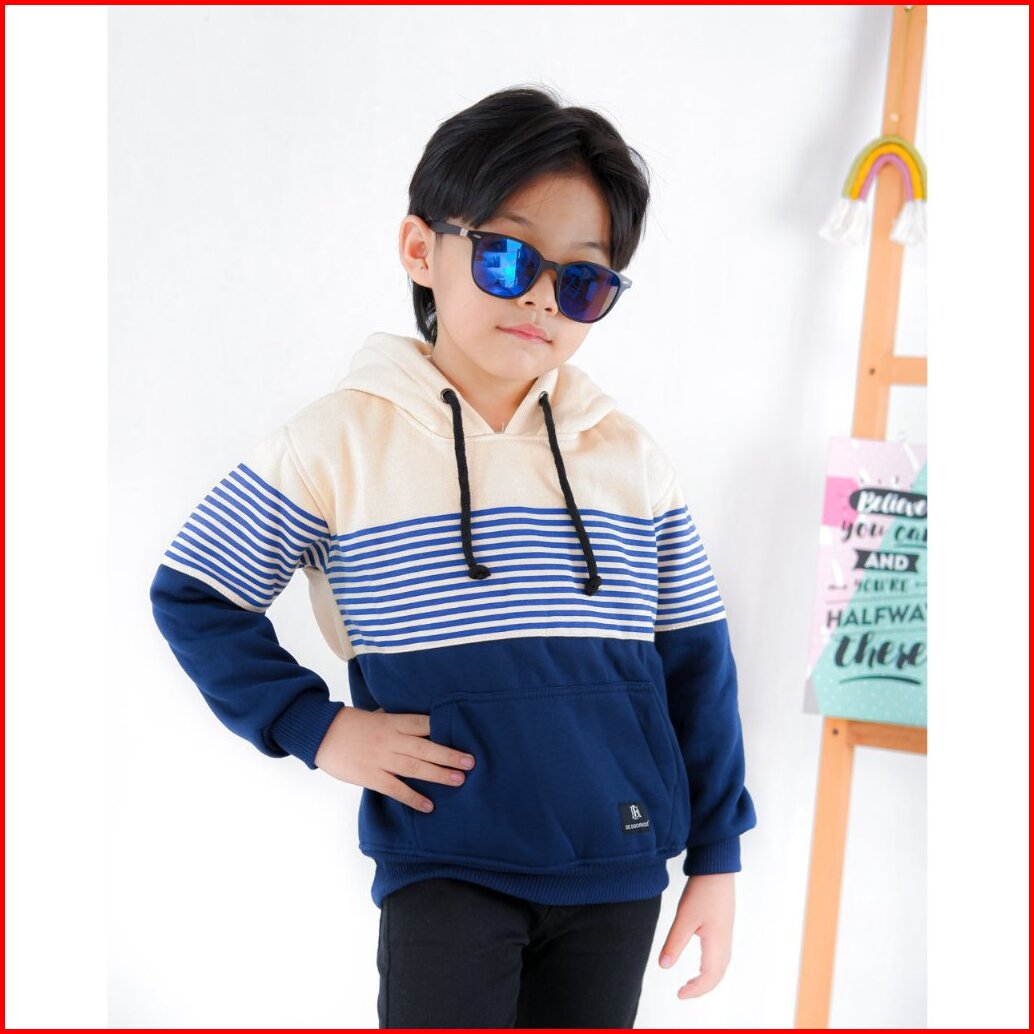 Jaket Hoodie Motif Salur Anak Dewasa Variasi Warna Usia 3-13 Tahun