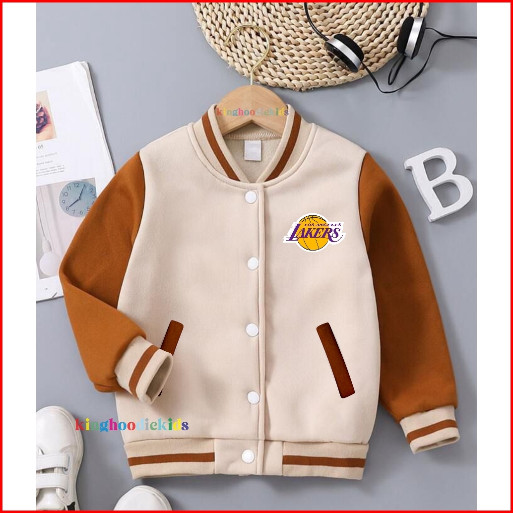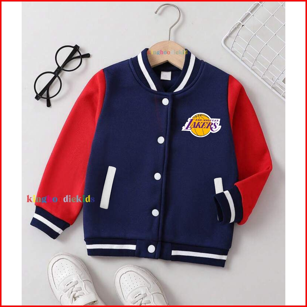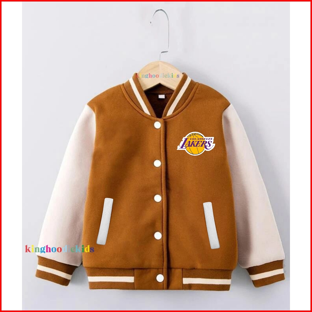 Varsity Jacket Baseball Anak Lakers Laki Laki Perempuan Umur 2 Sampai 12 Tahun Tahun Hoodie Swaeter Anak Bahan Flecee Ak