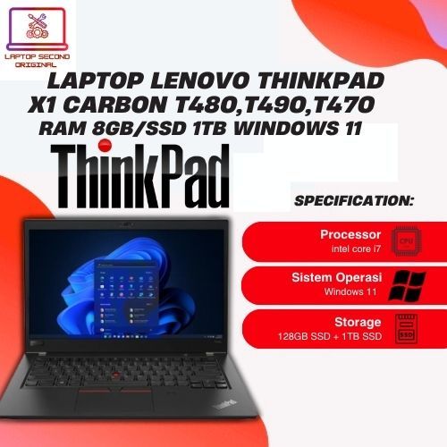 LAPTOP LENOVO THINKPAD X1 CARBON CORE i5 GEN 8 RAM 8GB SSD 512GB LAPTOP LENOVO THINKPAD T480 MULUS BERGARANSI RESMI