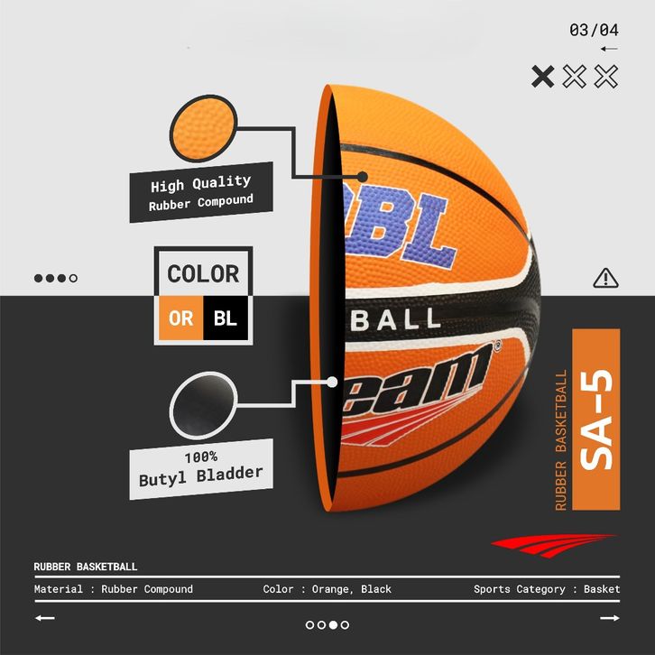Bola Olahraga Basket Ball DBL Proteam Size 5 Indoor Outdoor Sport Bahan Rubber Karet Type SA-5
