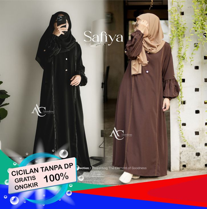 Alaydrus Collection Safiya Abaya Hitam Turkey Gamis Syari Muslimah Bahan Jetblack Hitam Kombinasi
