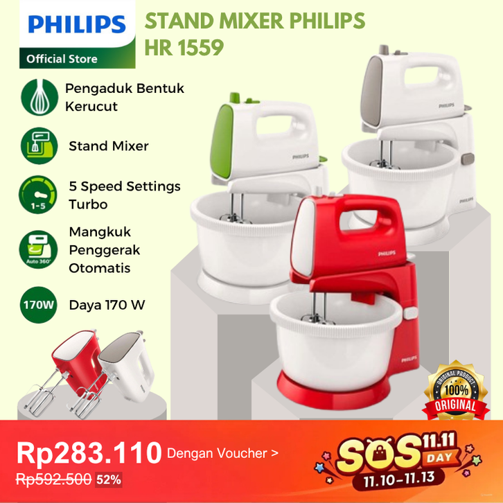 MIXER PHILIPS HR 1559 STAND MIXER PHILIPS 2 LITER MIXER PHILIPS TURBO MIXER PENGADUK ADONAN KUE ORIGINAL GARANSI RESMI