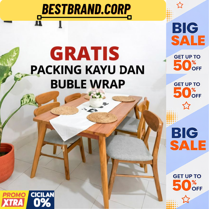 [Mall] Set Meja Makan 4 5 6 Kursi Kayu Jati Asi Jepara Meja Makan Kayu Minimalis Meja Makan Rotan READY TANPA PO