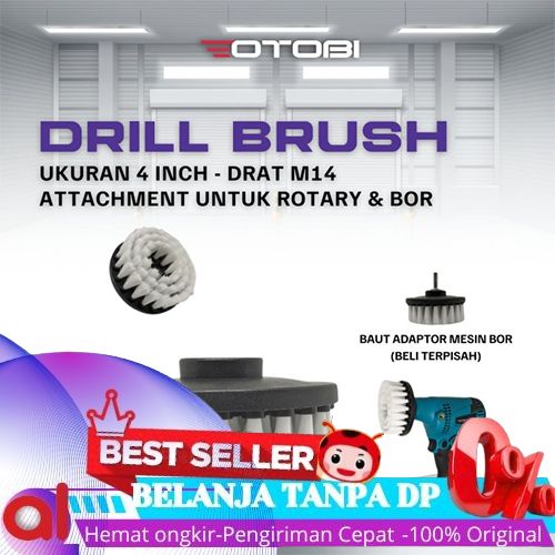 GRATIS ONGKIR SIKAT DRILL BRUSH M14 4" INCH UNTUK MESIN BOR & POLES U/ JOK KARPET - PUTIH - SOFT, TANPA ADAPTOR