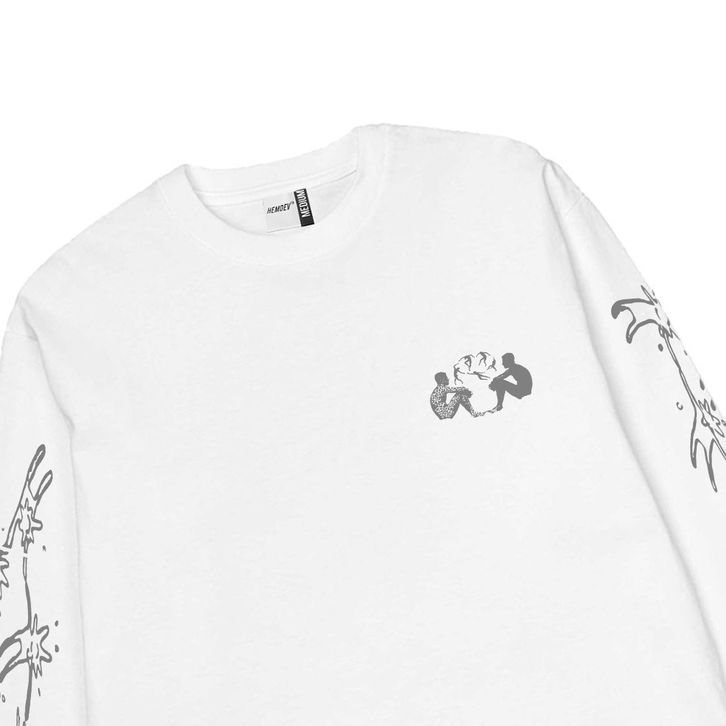 Switer Cowok Hemdev Tshirt Longsleeve Messa White Tees Katun Unisex Bahan Premium