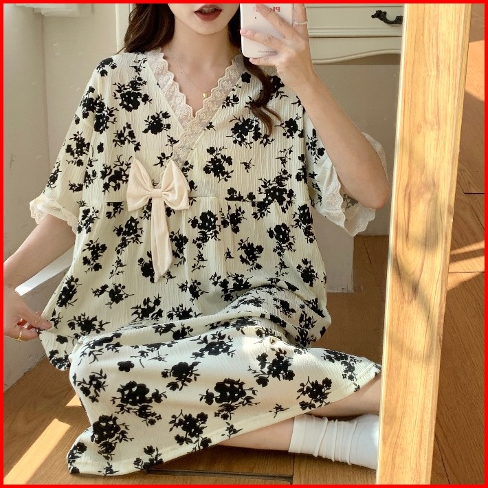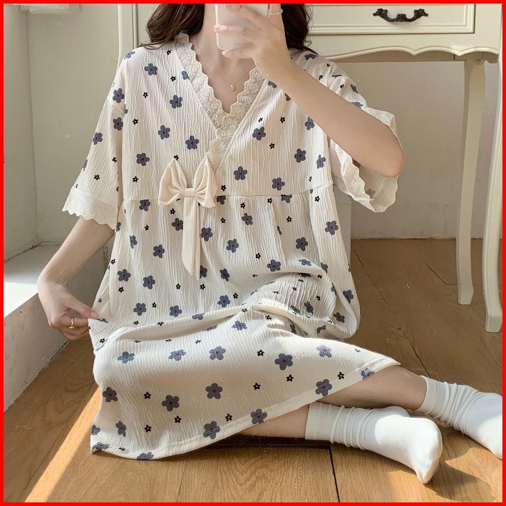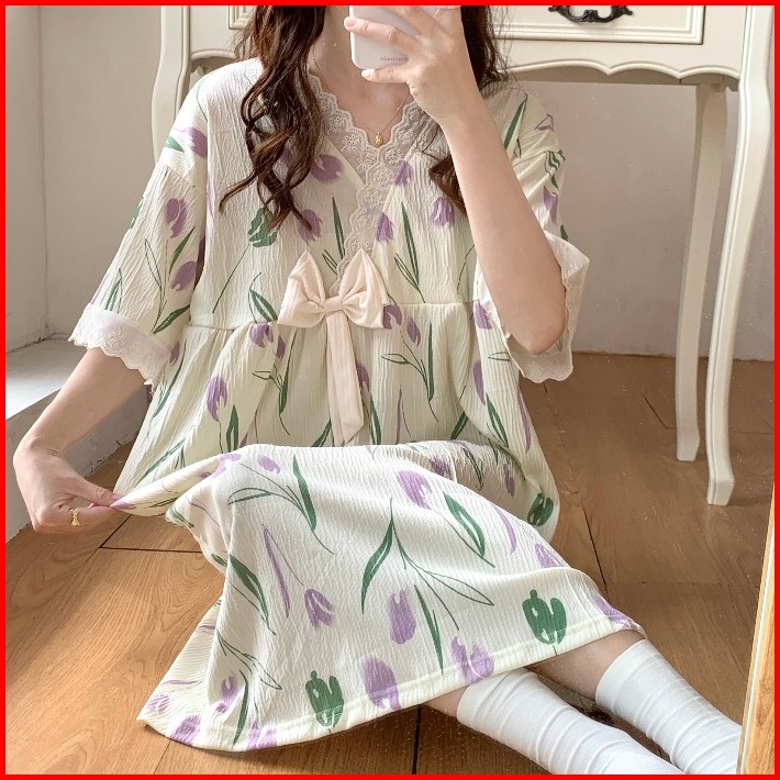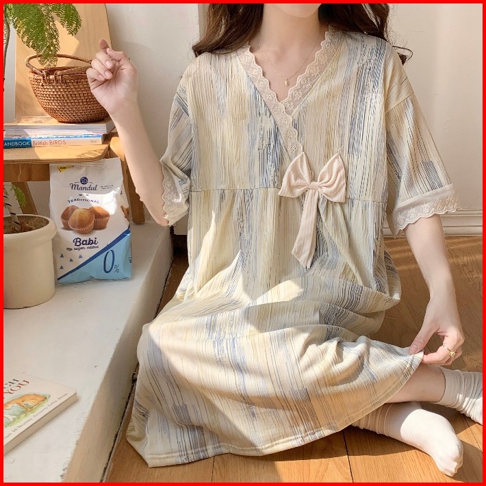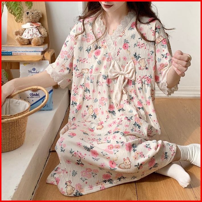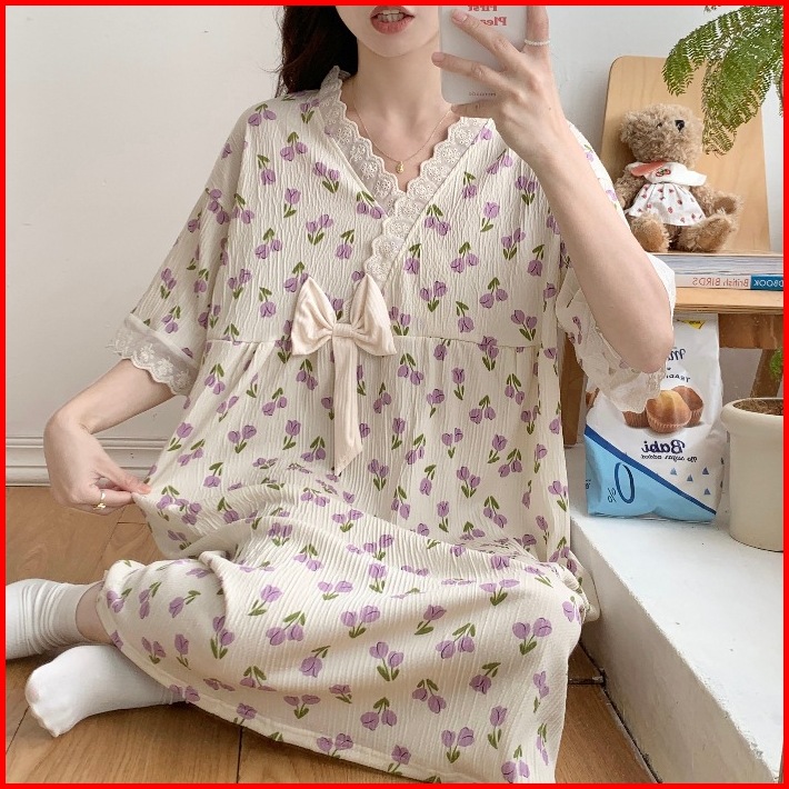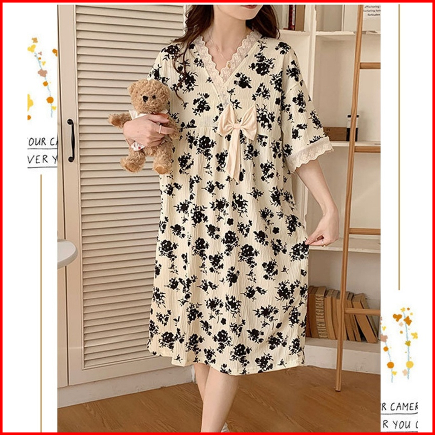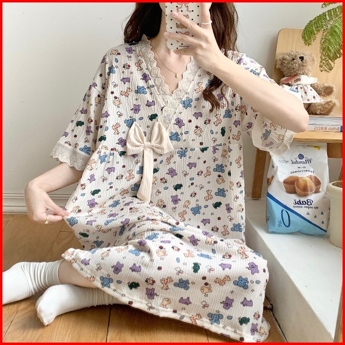 Uninice Daster Rayon Premium Panjang Rok Panjang Pakaian Rumah Gaya Jepang Lengan Pendek Ukuran Besar Longgar