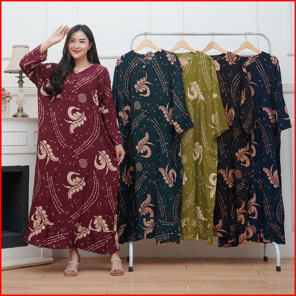 Daster Panjang Jumbo Ld 130 Lengan Panjang Longdress Rayon Busui Bahan Adem Harga Grosir