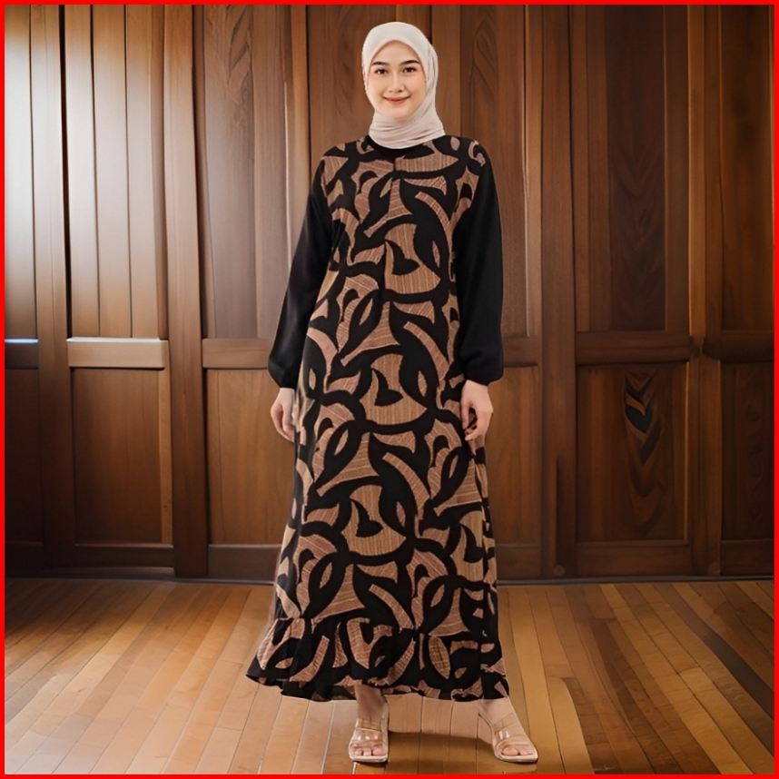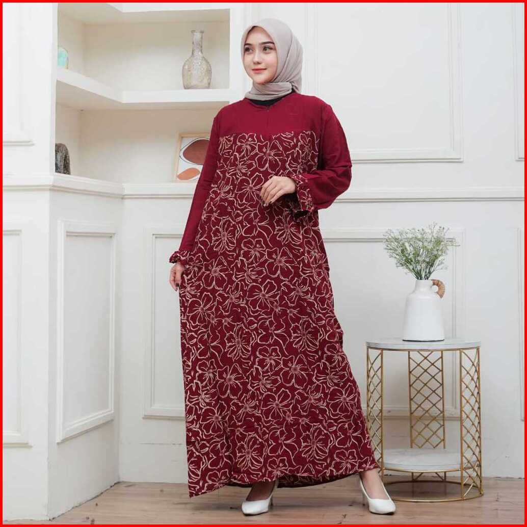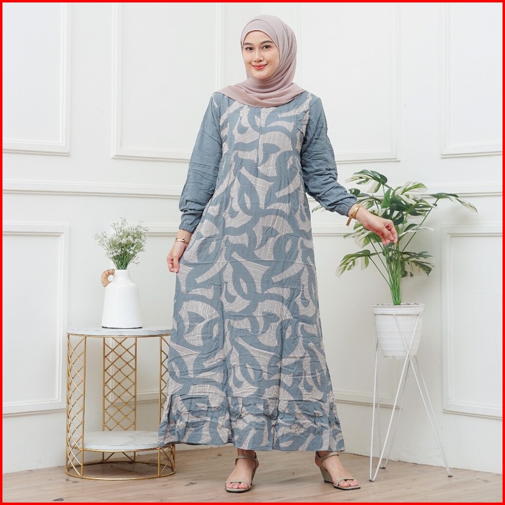 Palapa Dress Rayon Rempel Busui Lengan Panjang Homedress Batik Adem Tebal Nyaman