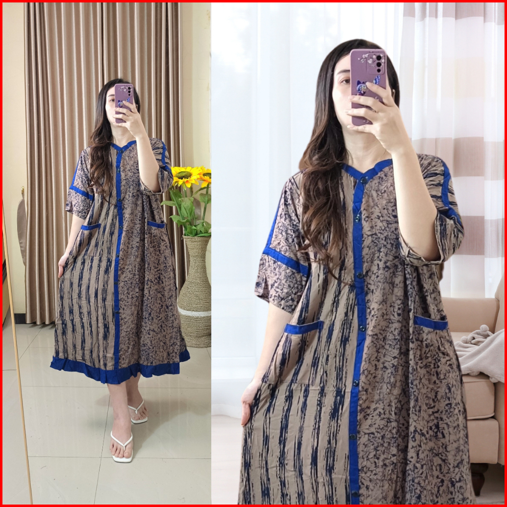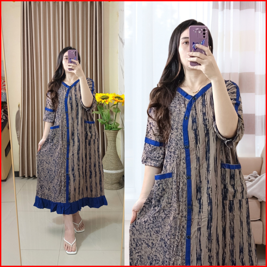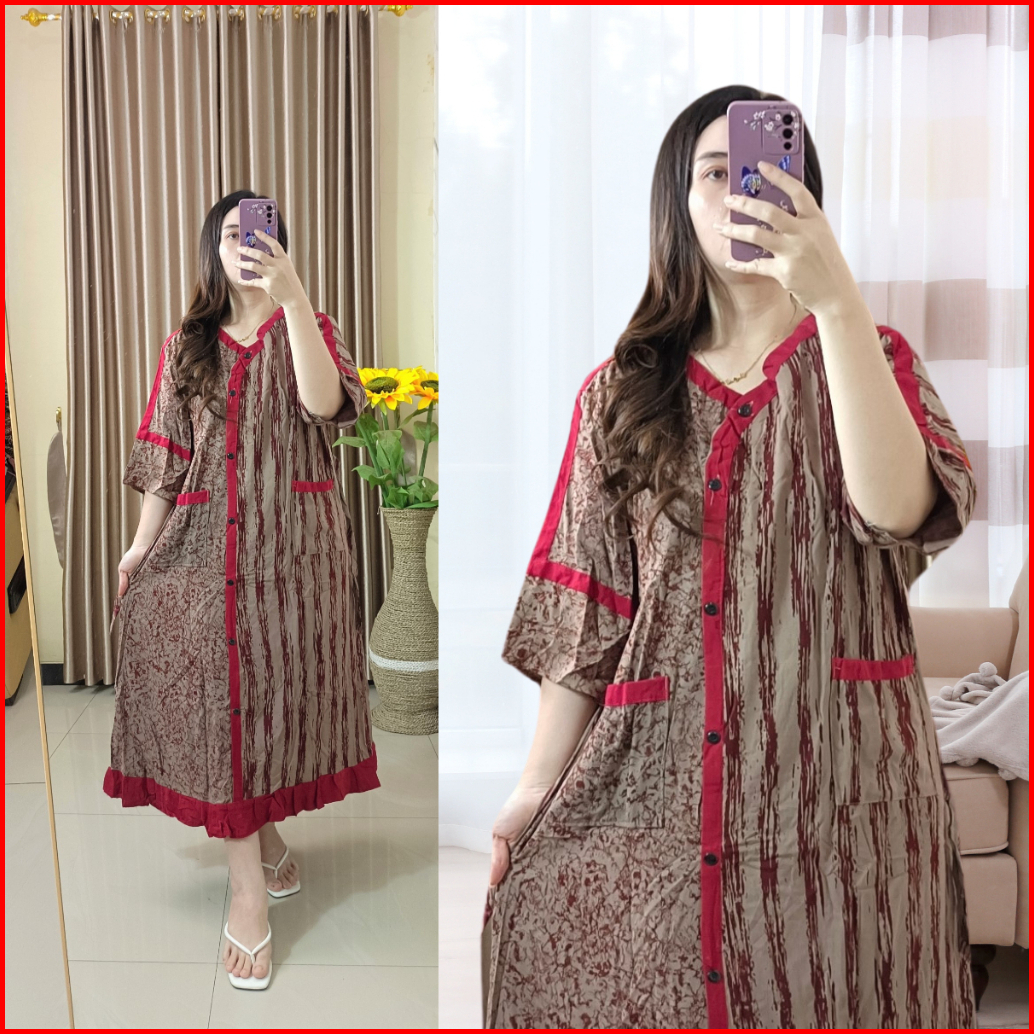 Daster Batik Garis Lengan Pendek Rayon Premium