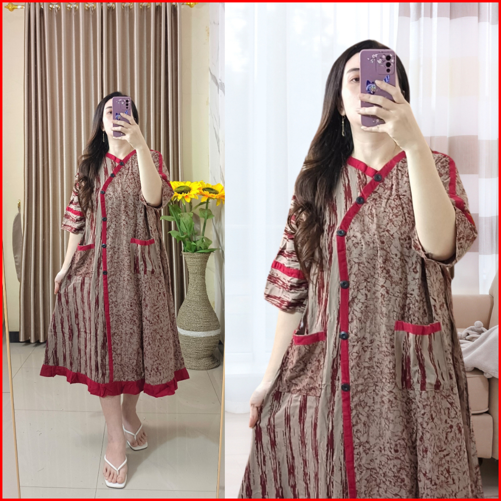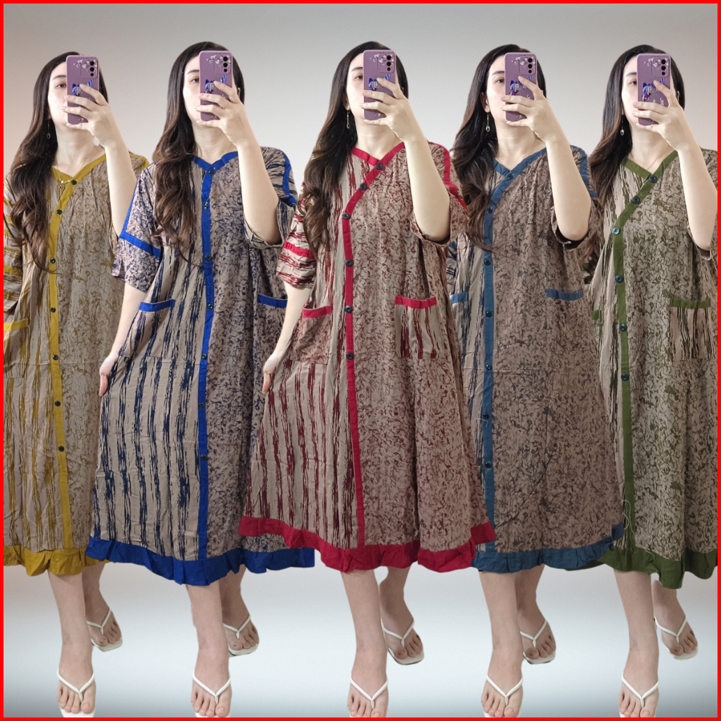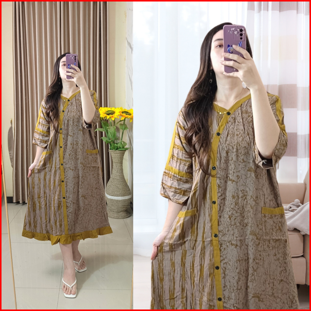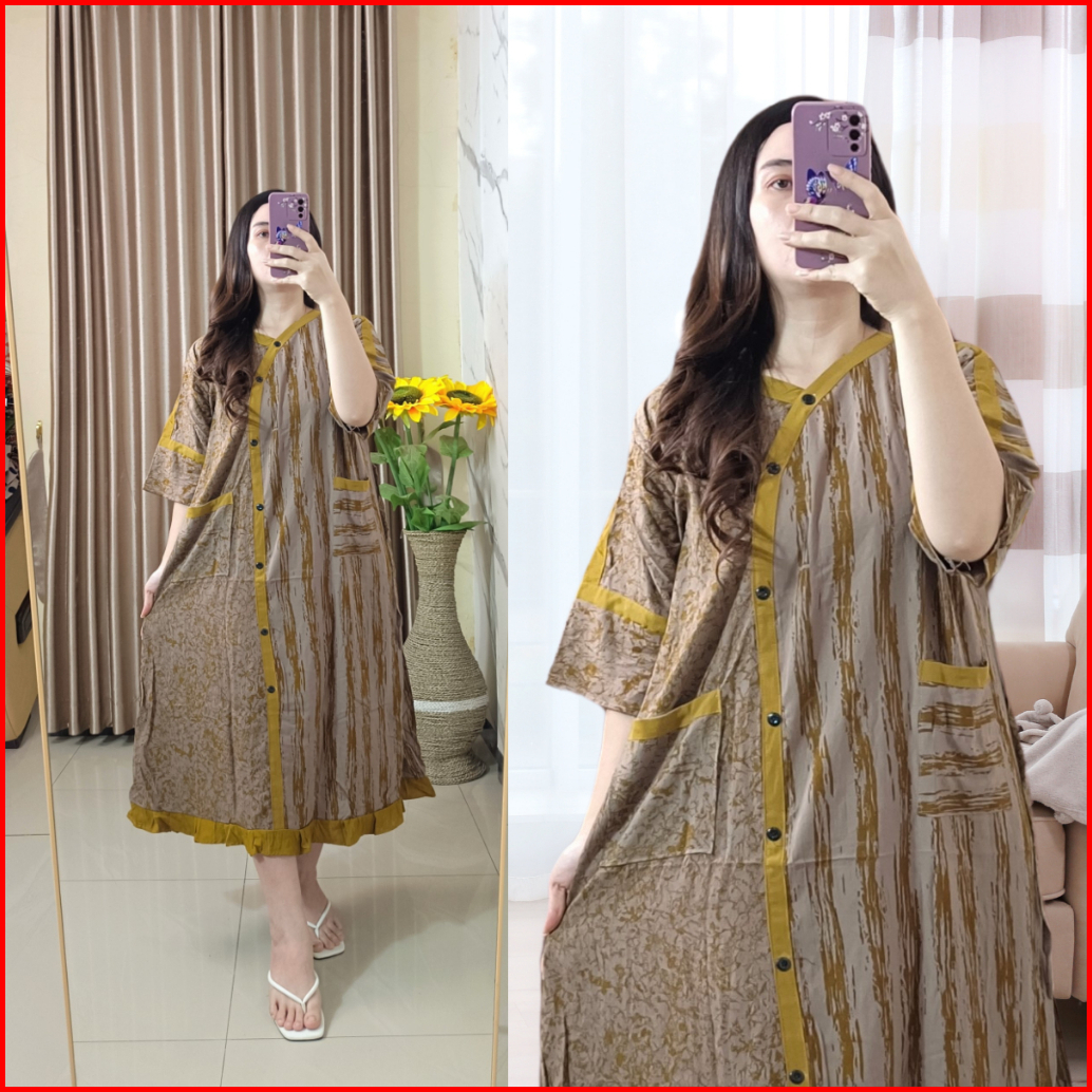 Daster Batik Garis Lengan Pendek Rayon Premium