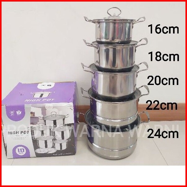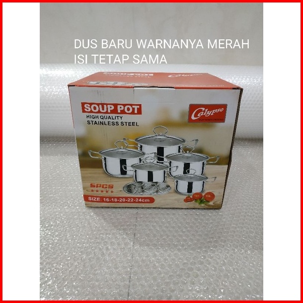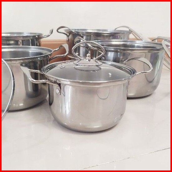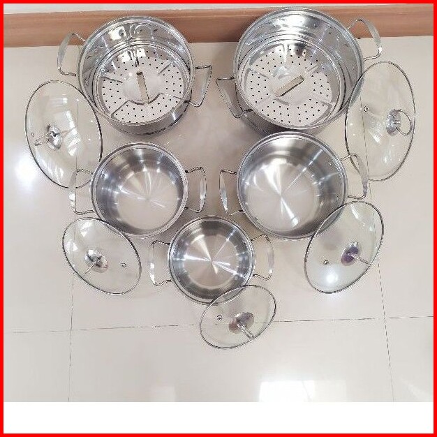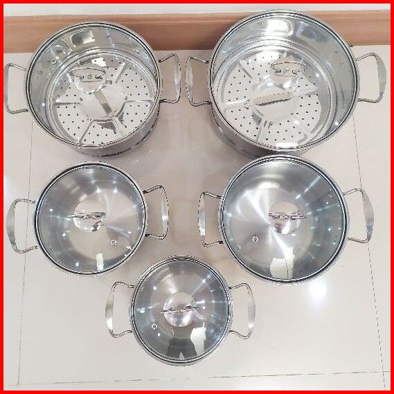 Panci Set Stainless Steel Tutup Kaca Saringan Susun 5