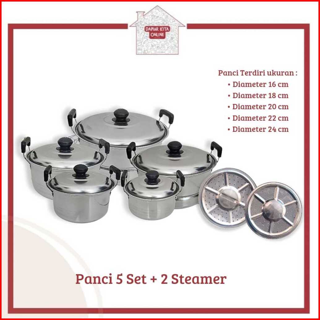 Panci Set 5 In 1 Steamer Tutup Stainless Panci Set Highpot Stainless 5in1 Panci Ndo Steamer Ss 168-s Panci Bmw Set 5 In