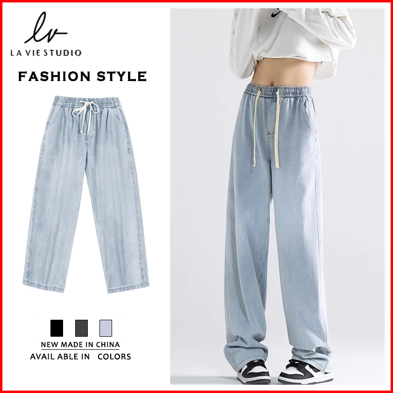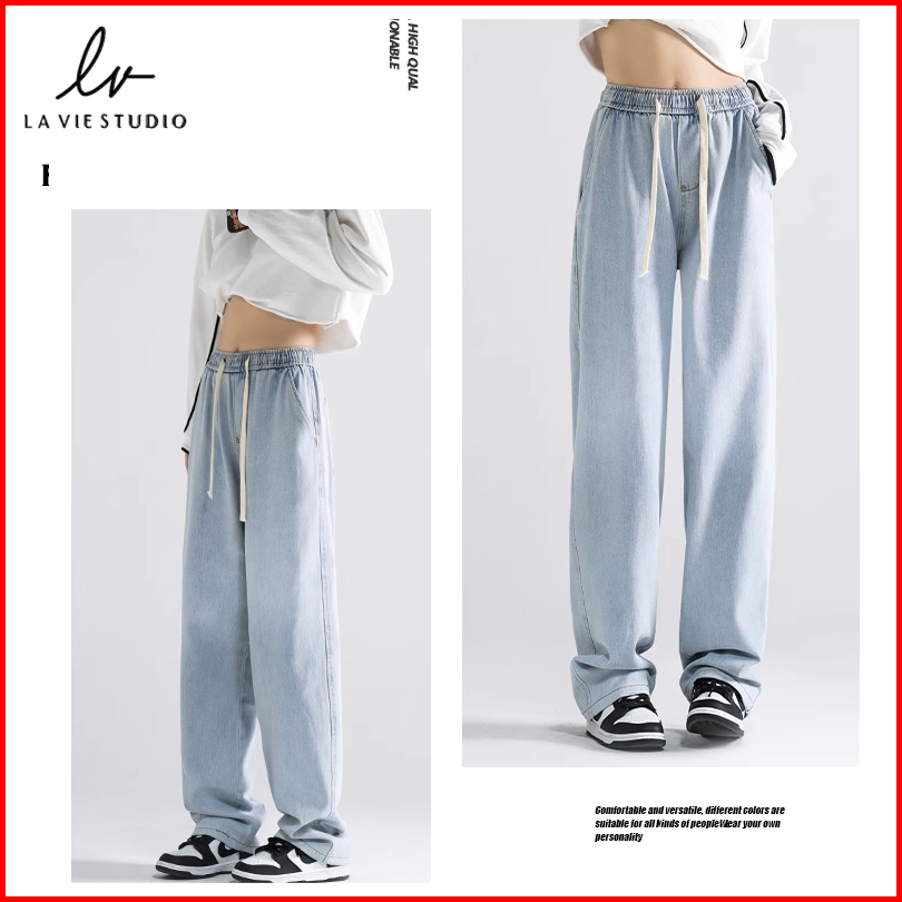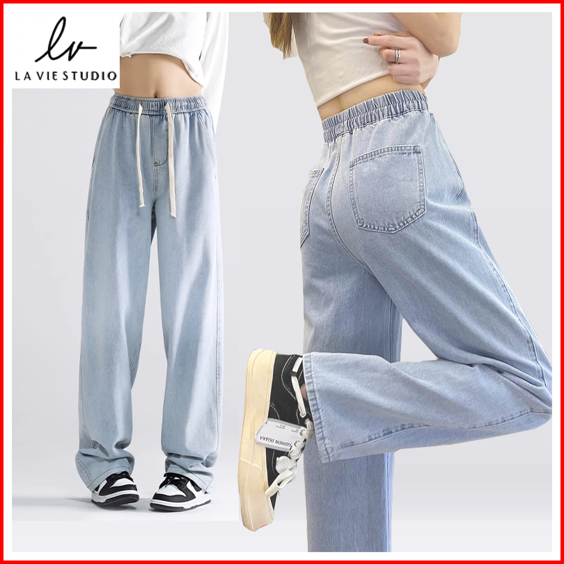 Celana Jeans Wanita High Waist Kulot Jeans Highwaist Biru Muda Korean Style Celana Wanita Pinggang Karet Casual Baggy Je