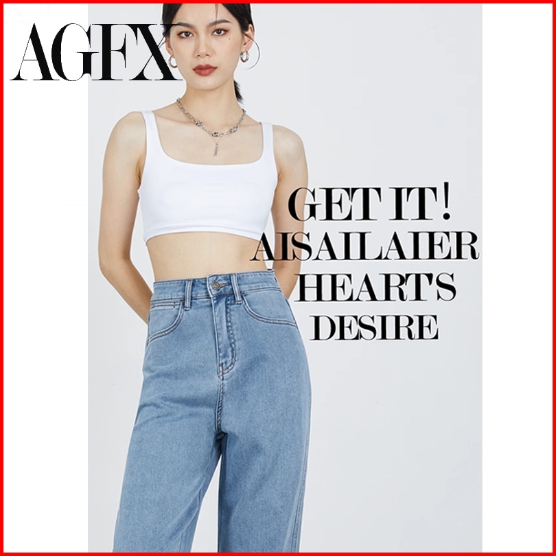 Celana Kulot Jeans High Waist Celana Panjang Jeans Wanita Import Loose Jeans High Waist - Light