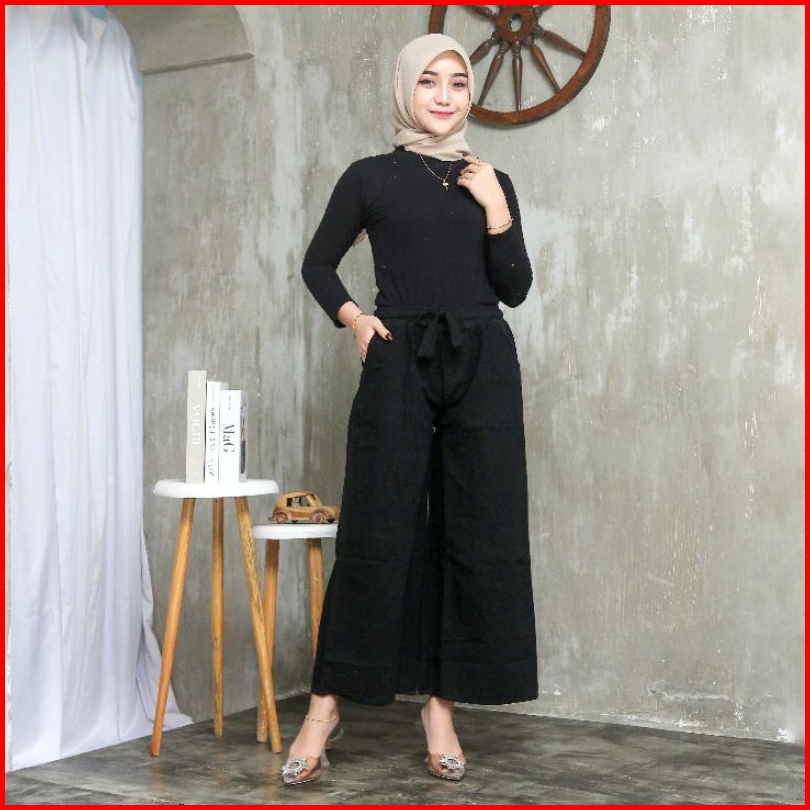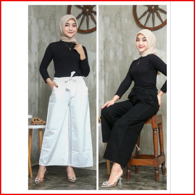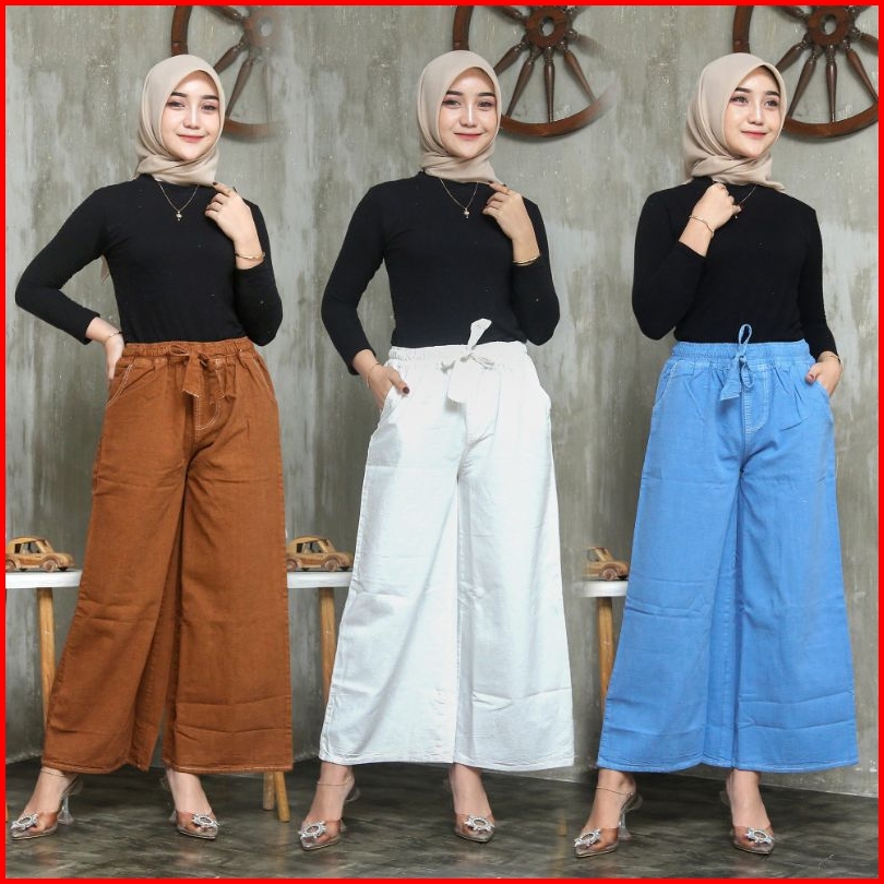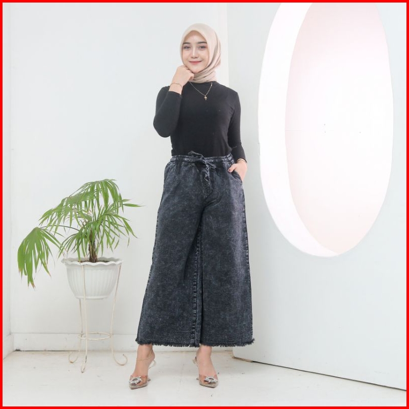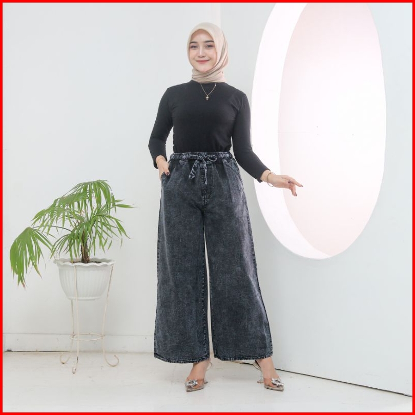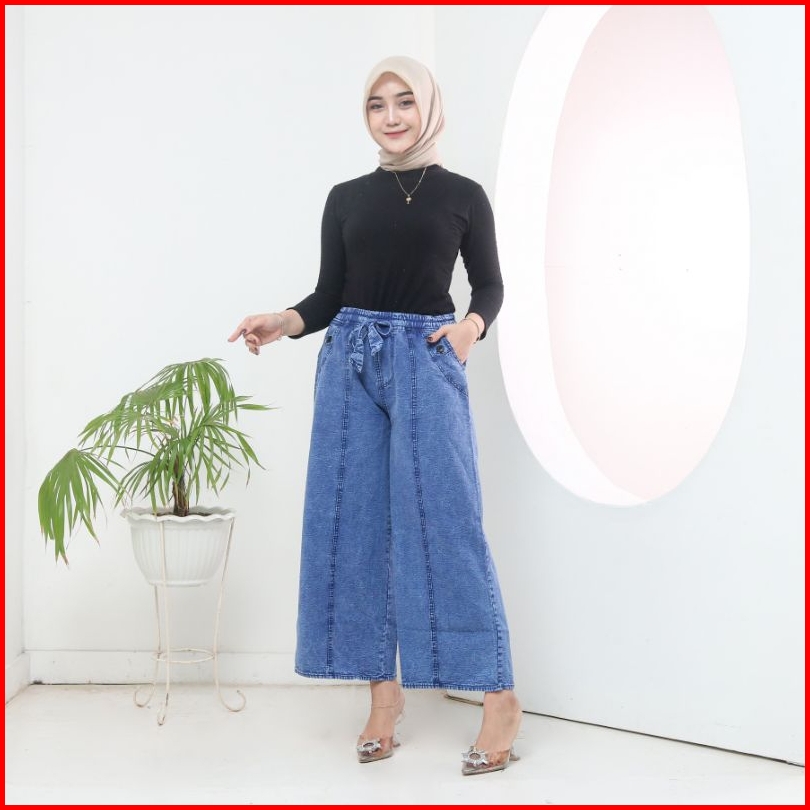 Celana Wanita Jeans Kulot Pinggang Full Karet . Celana Highwaist Standar Dan Jumbo