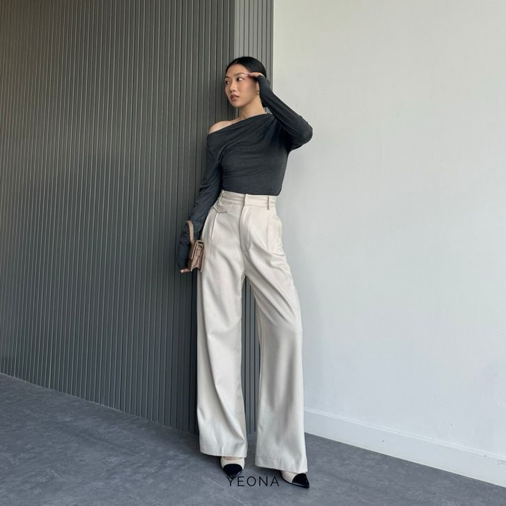 ORO PANTS by Yeona - Semiwool Straight Pants Celana Wanita Kekinian Korean Style Celana Kerja Wanita Formal Kantor