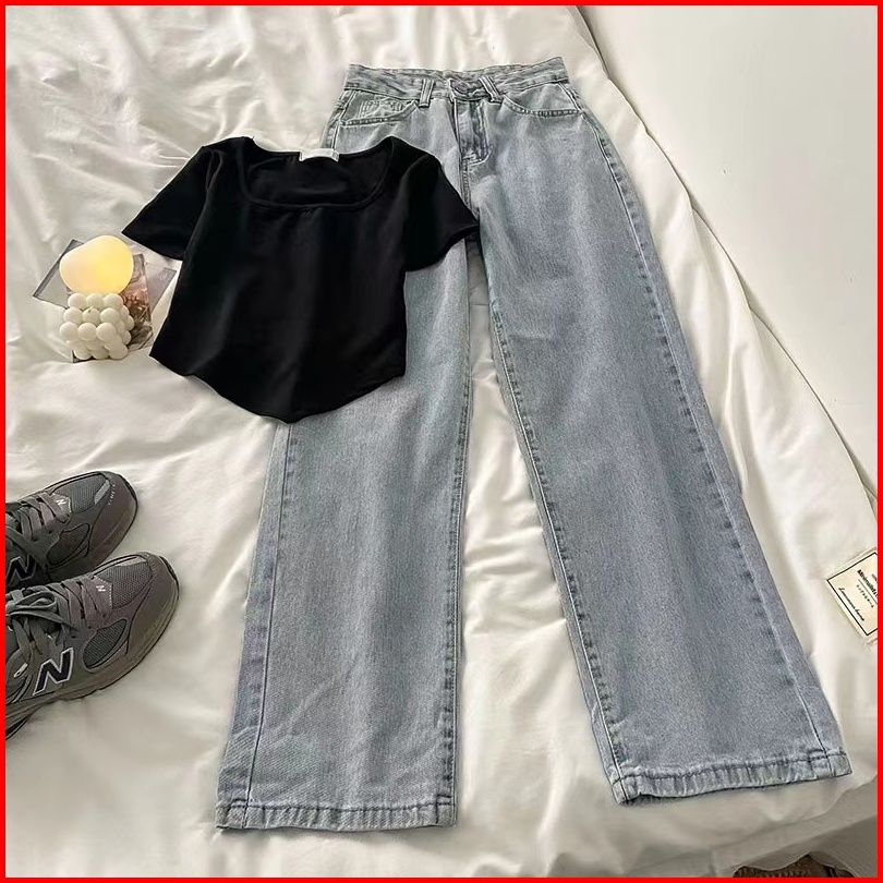 Celana Kulot Highwaist Longgar Jeans Wanita Premium