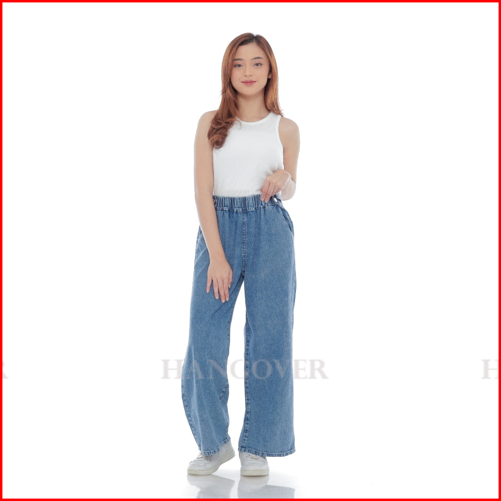 Celana Kulot Jeans Highwaist Loose Kulot Wanita Korean Style Celana Wanita Longgar Gaya Retro